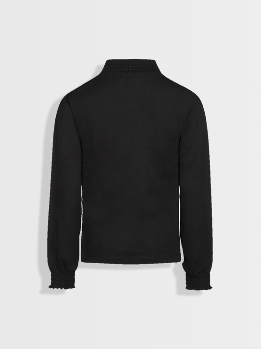 Elegant Black | Dievčenské tričko s dlhým rukávom in višjim ovratnikom