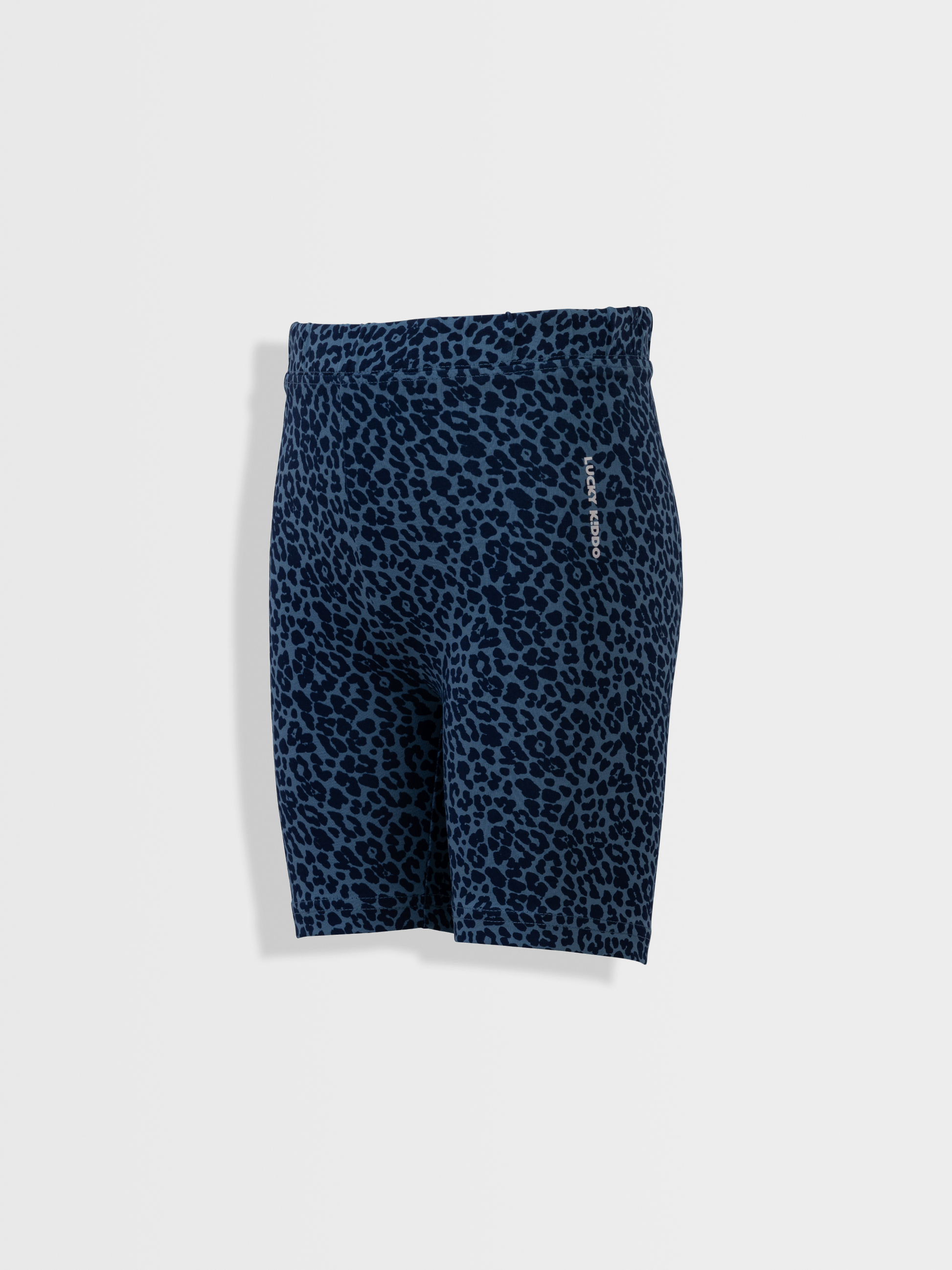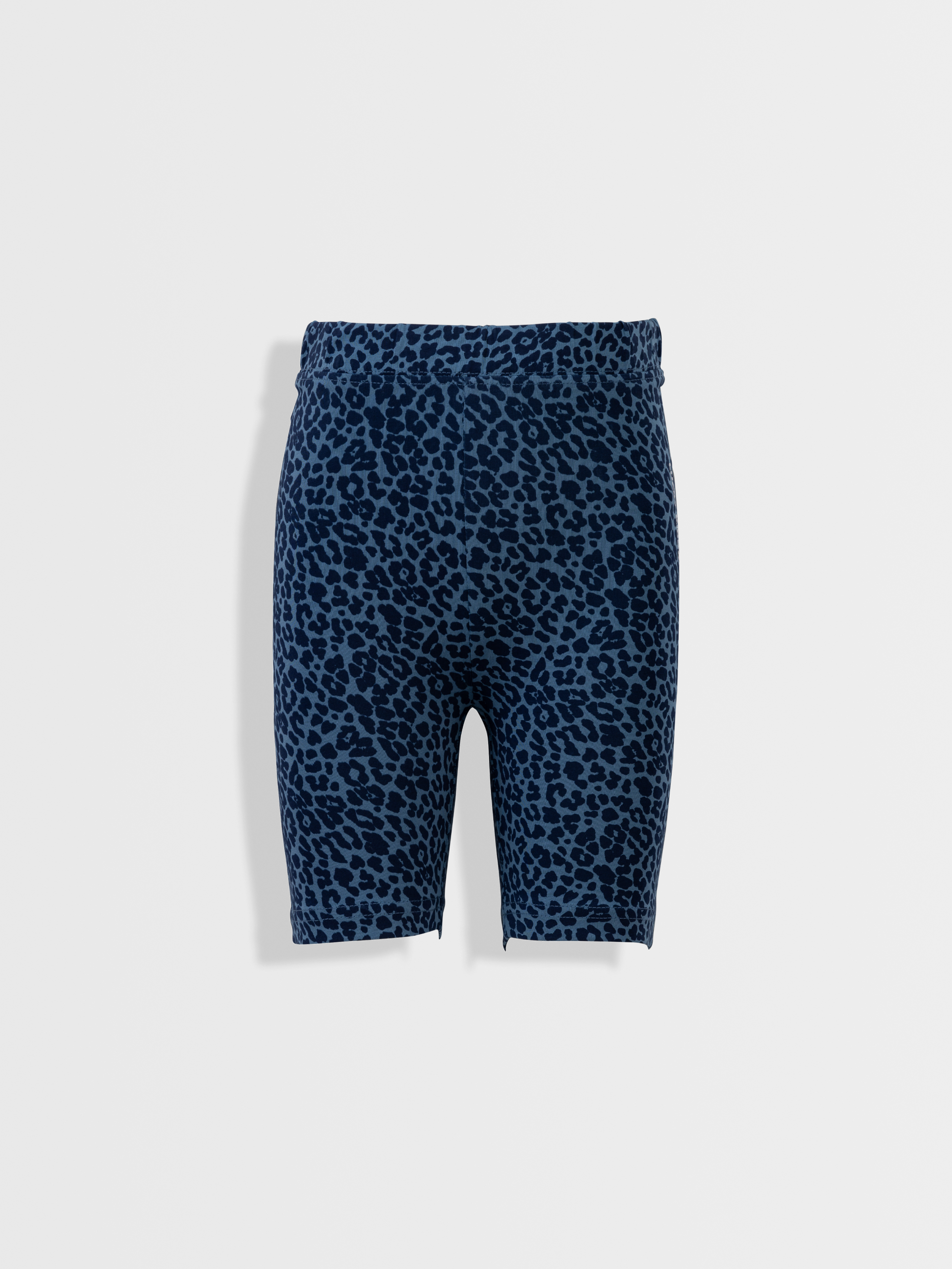 Dievčenské krátke legíny v modrej farbe s leopardím vzorom – ľahké a pohodlné pre bezstarostný pohyb.
