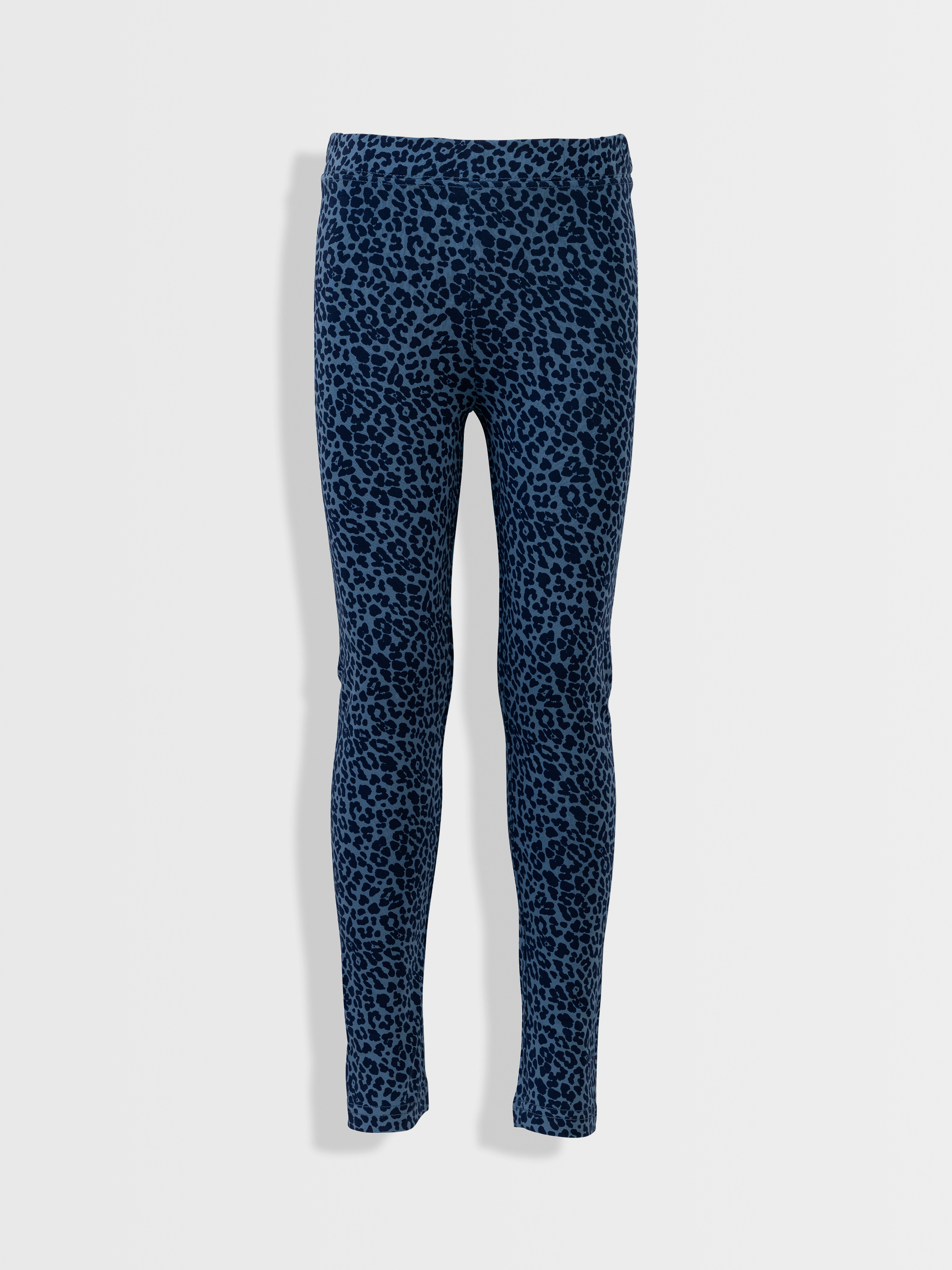 Dievčenské legíny v modrej farbe s leopardím vzorom – pohodlné a všestranné na každý deň.