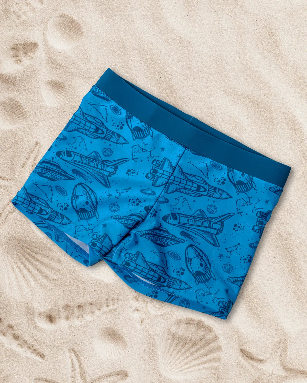 Vydajte sa na medzihviezdne dobrodružstvo s našimi chlapčenskými boxerkovými plavkami s motívom vesmírnych lodí! Tieto plavky sú stvorené pre mladých prieskumníkov, ktorí snívajú o vesmíre, hviezdach a nekonečných možnostiach. Vďaka kvalitným materiálom a originálnemu dizajnu bude každý deň pri vode plný fantázie a zábavy.