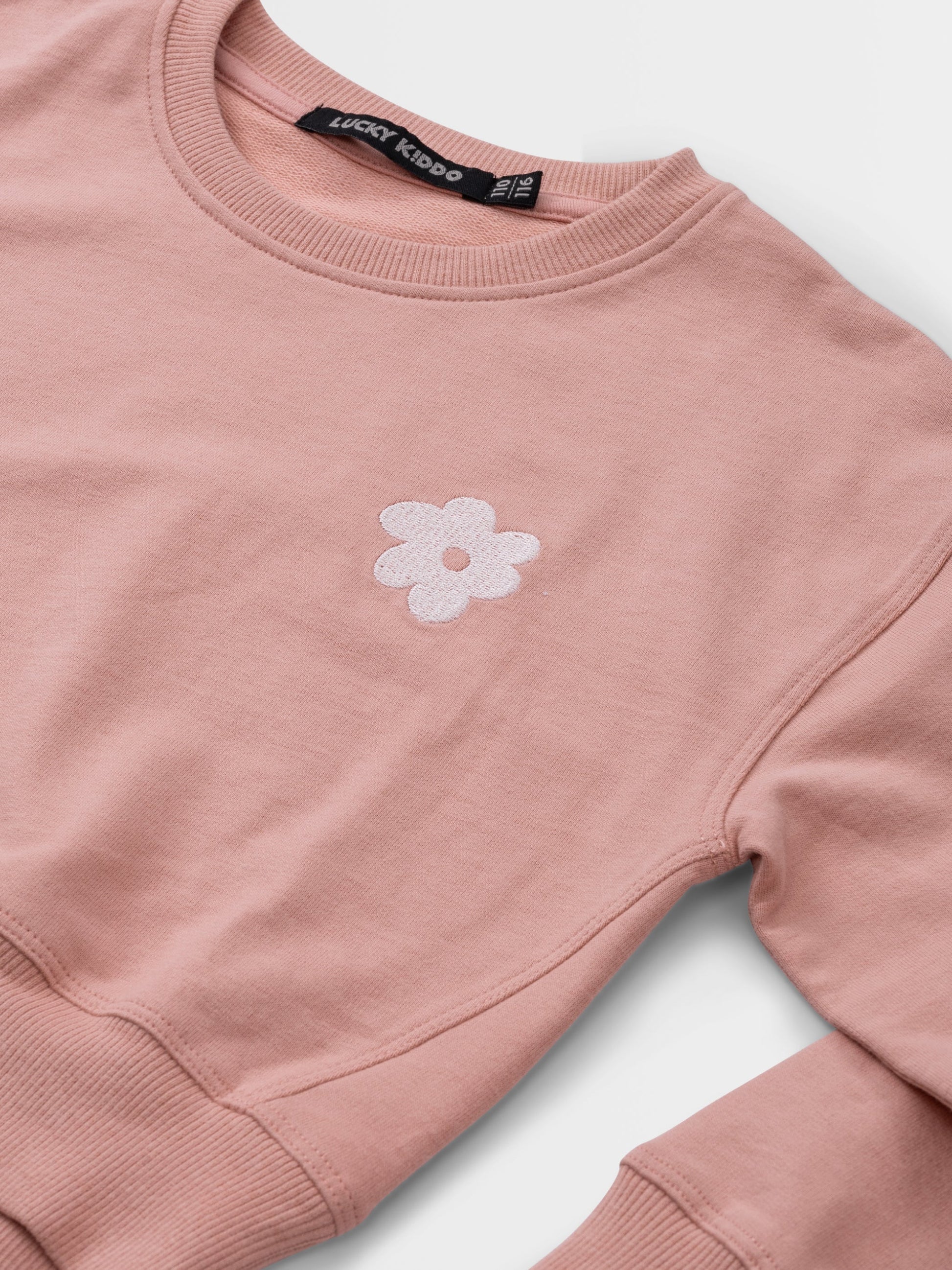 Orezaný sveter s výstrihom s kvetinovou výšivkou a ozdobným prešívaním.