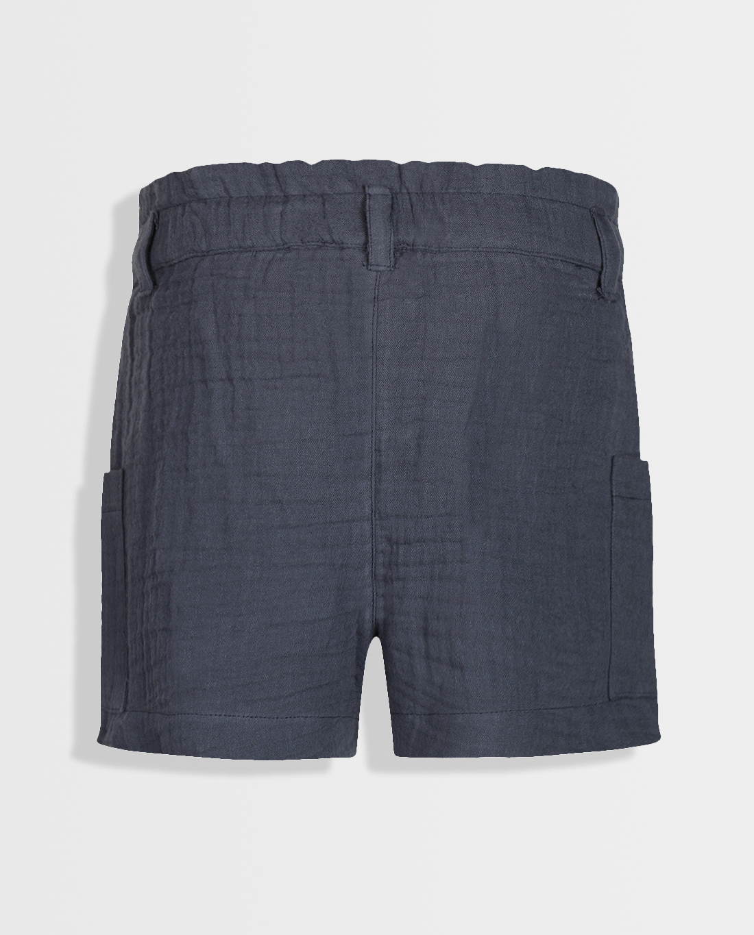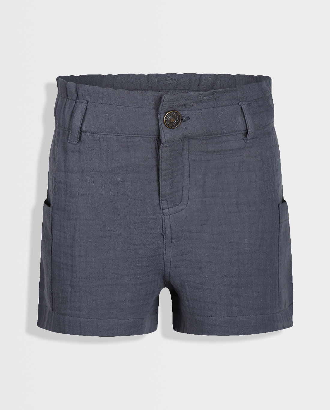 Dievčenské krátke nohavice Lucky Kiddo v tmavomodrej farbe sú ideálnou voľbou na letné dni. Vyrobené zo 100 % bavlny, poskytujú prirodzenú priedušnosť, mäkkosť a príjemný pocit na pokožke. Elastický pás s volánikmi a ozdobným gombíkom dodáva osobitý šarm, zatiaľ čo bočné vrecká a pútka na opasok umožňujú funkčnosť aj štýl. Ideálne na každodenné nosenie alebo špeciálne príležitosti!