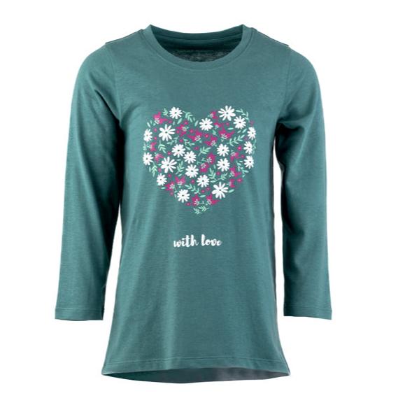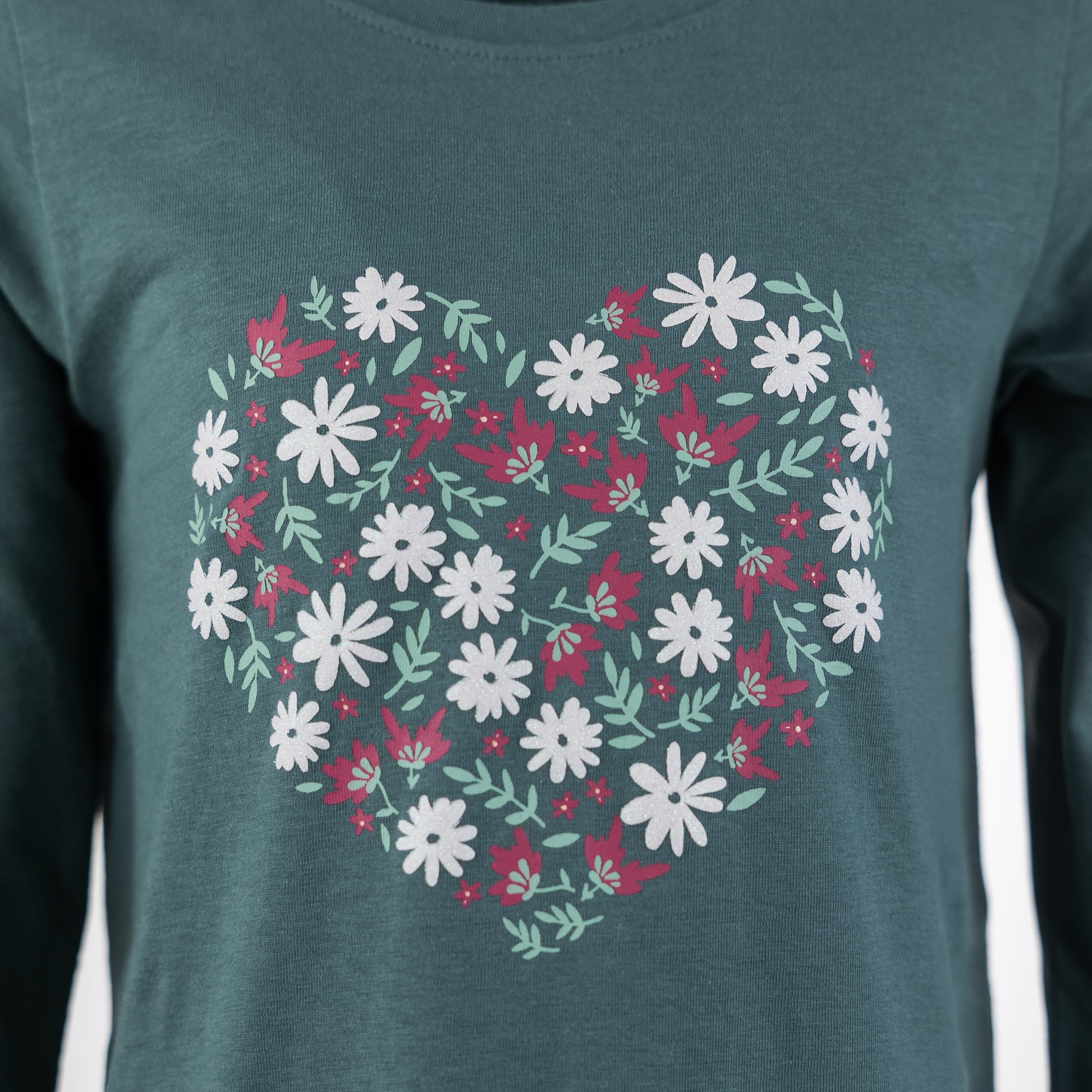 Táto nádherná tunika kombinuje jemnú eleganciu a pohodlie, čo je ideálne pre všetky malé módne nadšenkyne, ktoré chcú vyniknúť. Motív kvetov v tvare srdca prináša romantický a hravý nádych, zatiaľ čo mäkká bavlnená tkanina zabezpečuje celodenné pohodlie. Mentolová farba dodáva sviežosť a upokojujúci tón, ktorý sa ľahko kombinuje s rôznymi doplnkami.