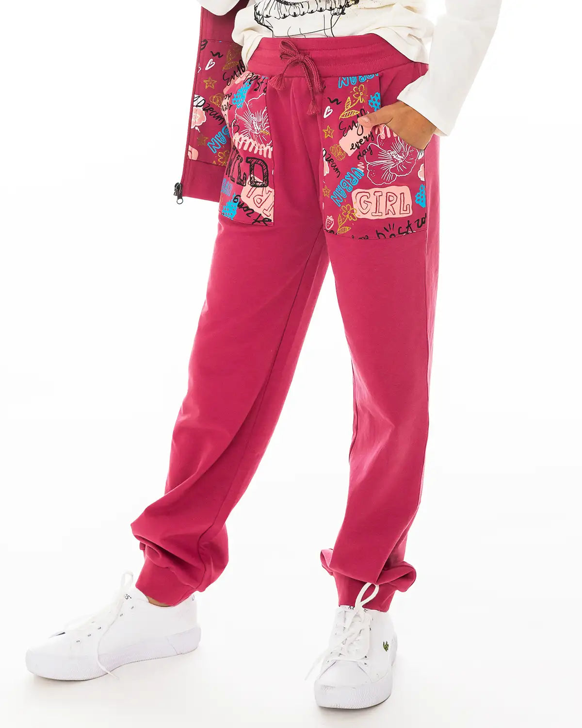 100% cotton Girls sweatpants with print on pockets
