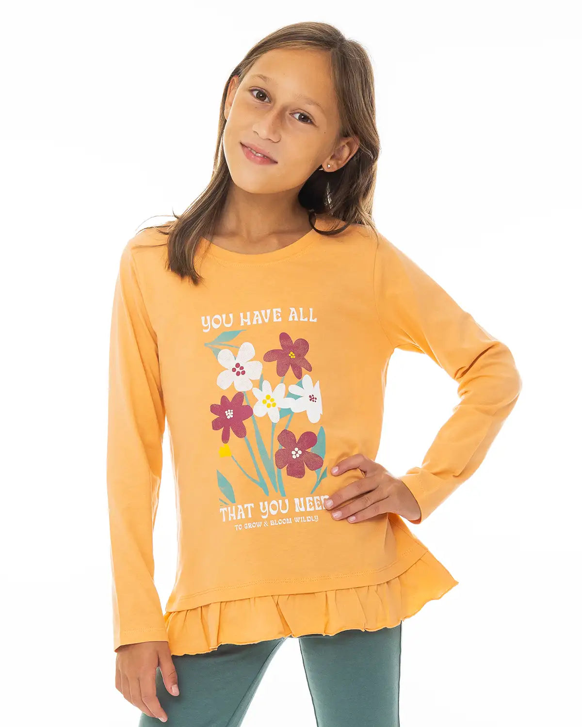 Bloom Orange | Dievčenská tričko s dlhým rukávom