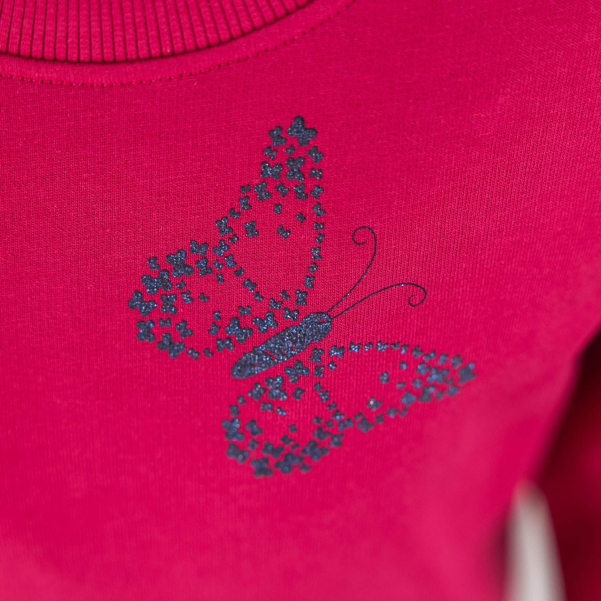 Tento nádherný dievčenský sveter v žiarivej pink farbe je ideálnou voľbou na chladnejšie dni. Je vyrobený z mäkkej a príjemnej bavlny, ktorá zaručuje pohodlie počas celého dňa. Sveter je ozdobený roztomilými motýlikmi, ktoré mu dodávajú hravý a módny vzhľad. Vďaka svojmu dlhému strihu sa dá nosiť aj ako šaty, čo umožňuje všestrannosť v šatníku každej dievčiny. Kombinujte ho s legínami alebo nohavicami pre ležérny vzhľad, alebo ho noste samostatne ako šaty pre elegantnejšiu príležitosť. Rebrované manžety na rukávoch zabezpečujú dobré priliehanie a udržiavajú teplo. Nechajte svoju malú hviezdu zažiariť v tomto rozkošnom a pohodlnom svetri, ktorý sa určite stane jej obľúbeným kúskom v šatníku!