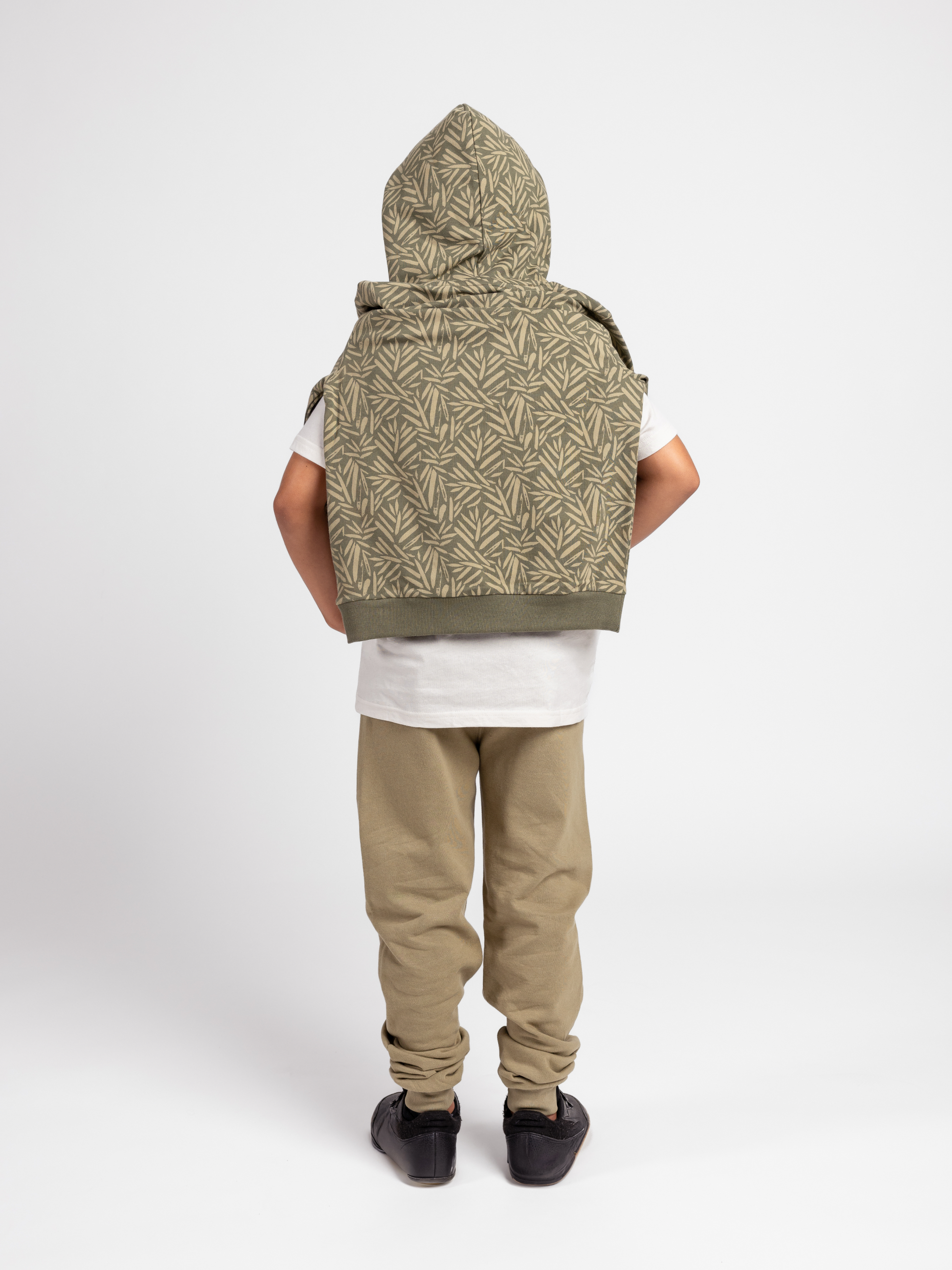 Lucky Kiddo mikina s kapucňou je dokonalou výbavou na schovávačku medzi stromami alebo na štýlovú prechádzku mestom – kdekoľvek sa skrýva nové dobrodružstvo! V zelenej farbe a s potlačou lístkov bude každý malý prieskumník vyzerať naozaj »lesne pripravený«. Je vyrobená z mäkkej bavlny s prídavkom elastanu, takže je pohodlná, teplá a dostatočne pružná na všetky detské šibalstvá. Patenty na rukávoch a v páse zaisťujú, že mikina zostane na mieste – aj počas najrušnejších dní!