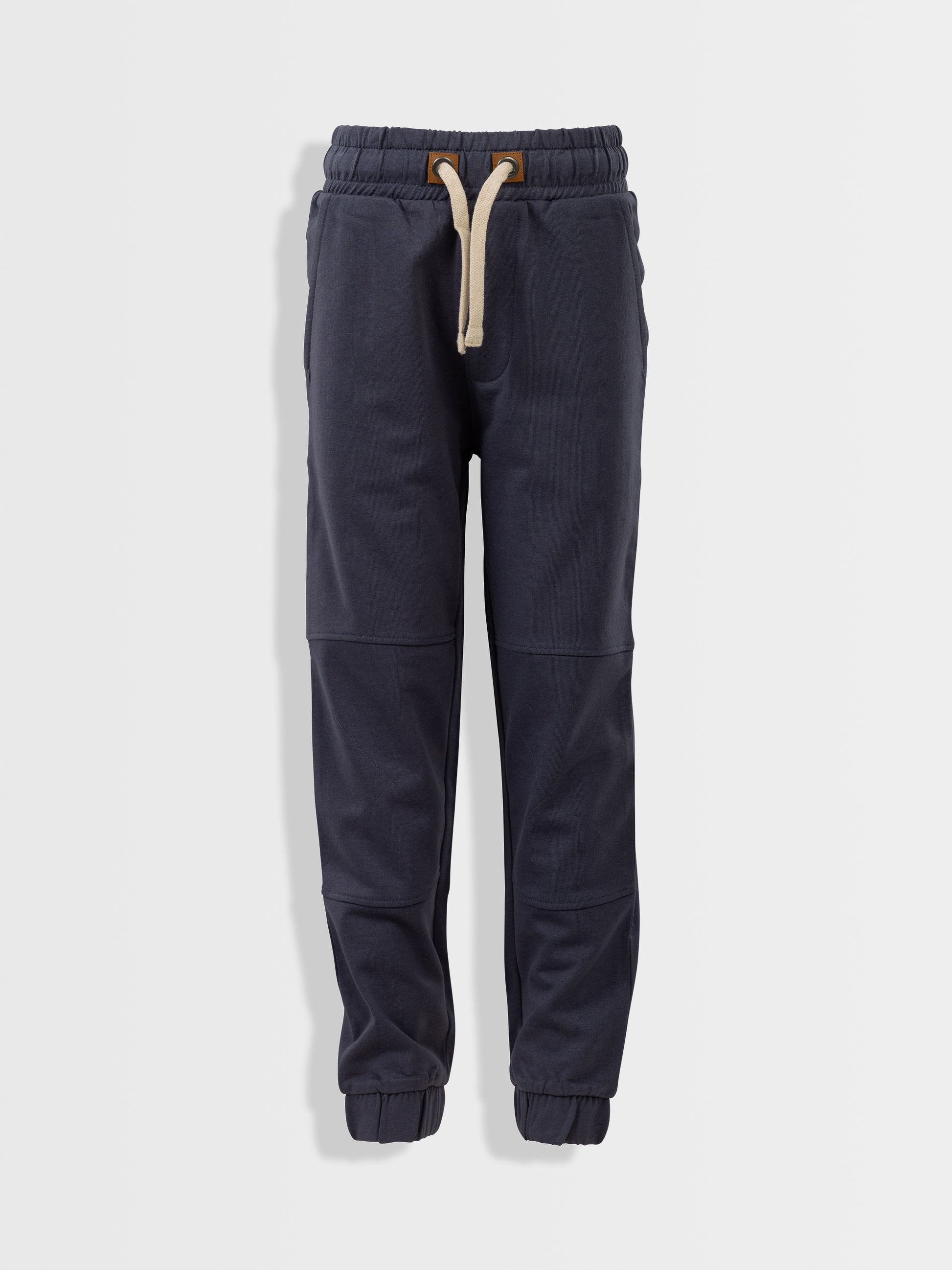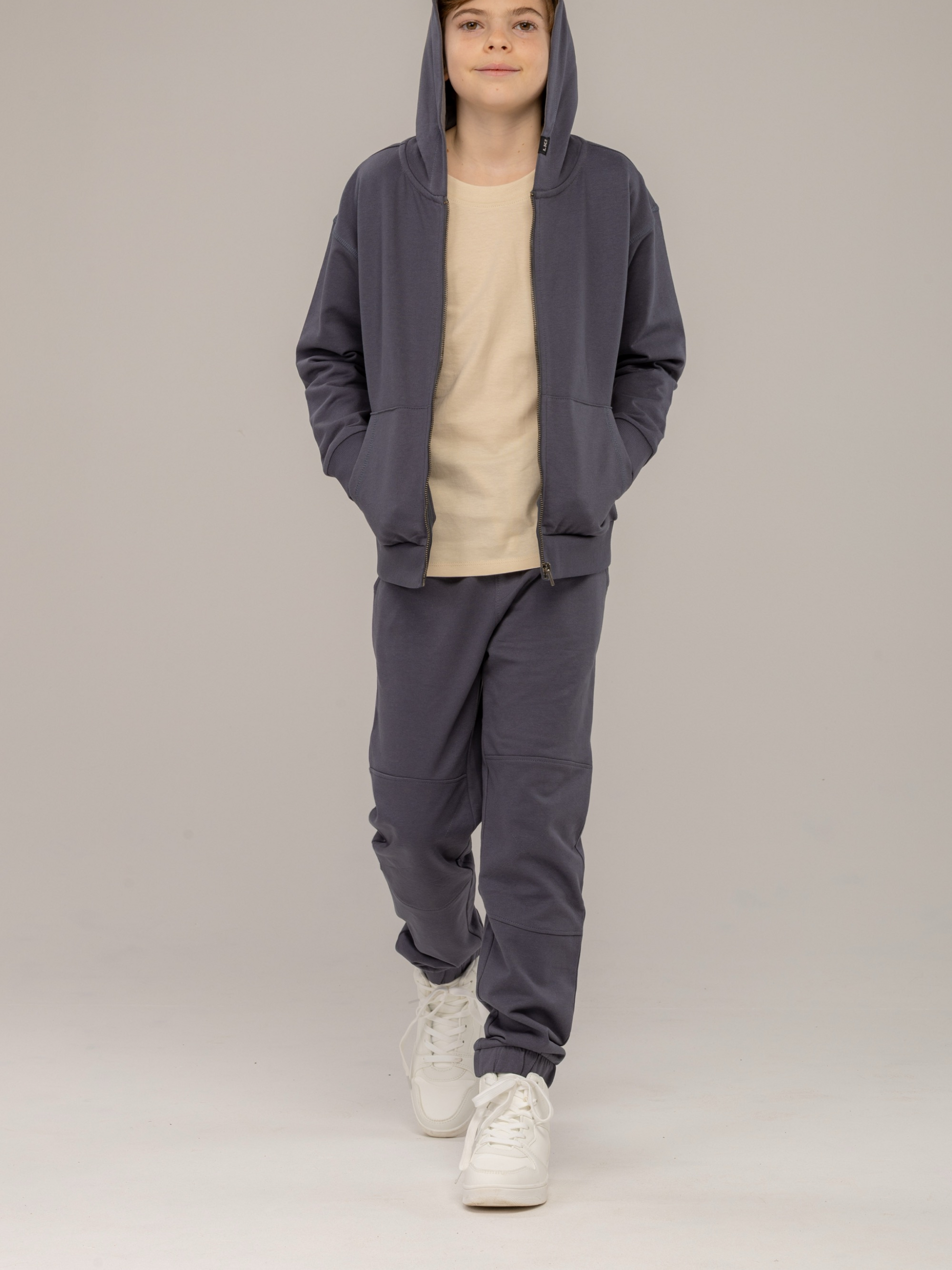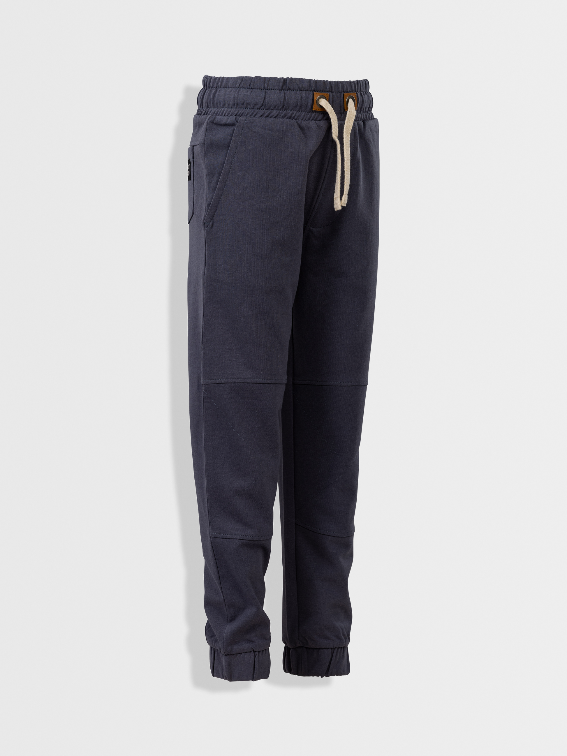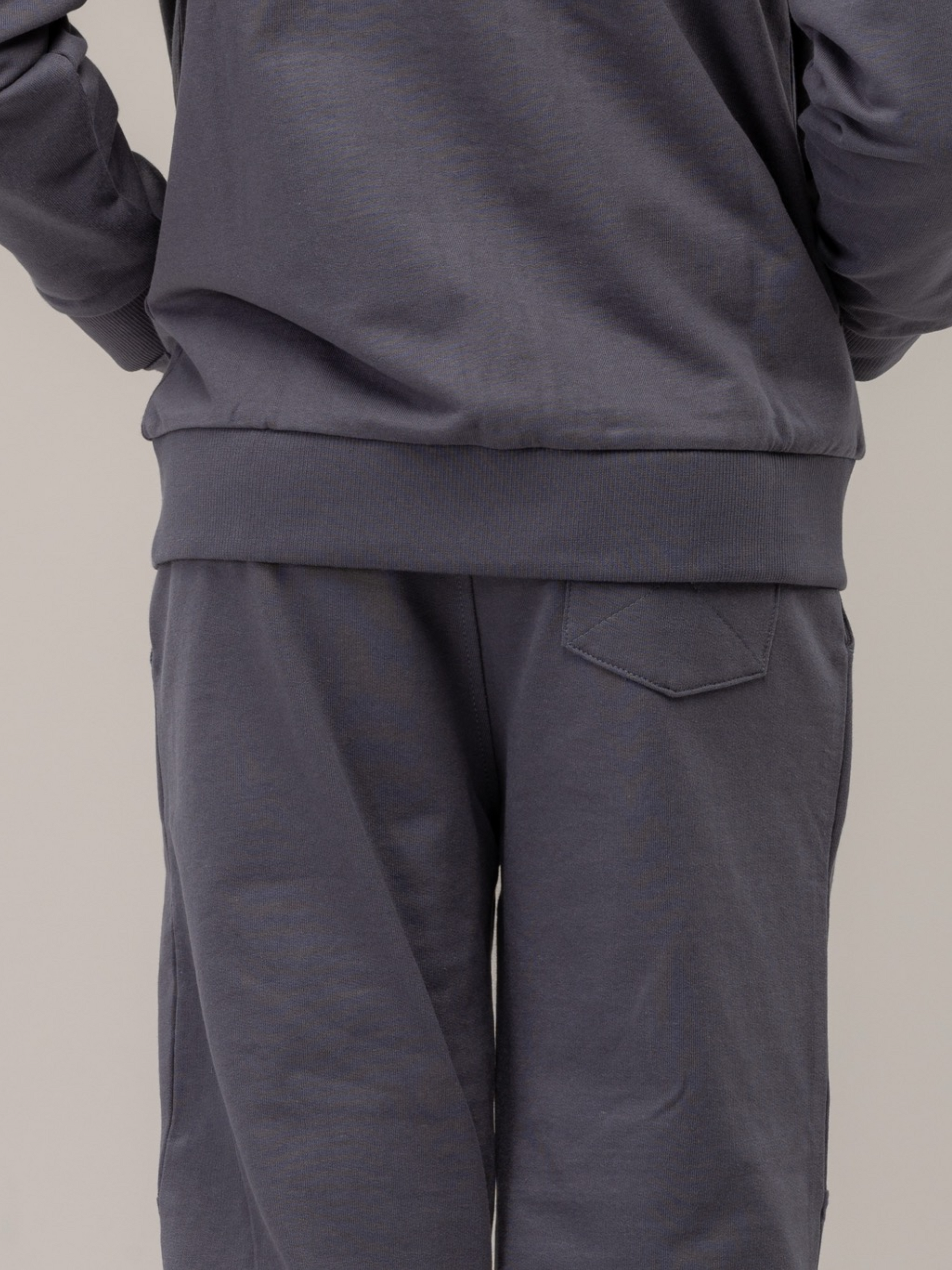 Chlapčenské tepláky v železnej sivej farbe s ozdobným prešívaním pre moderný vzhľad.