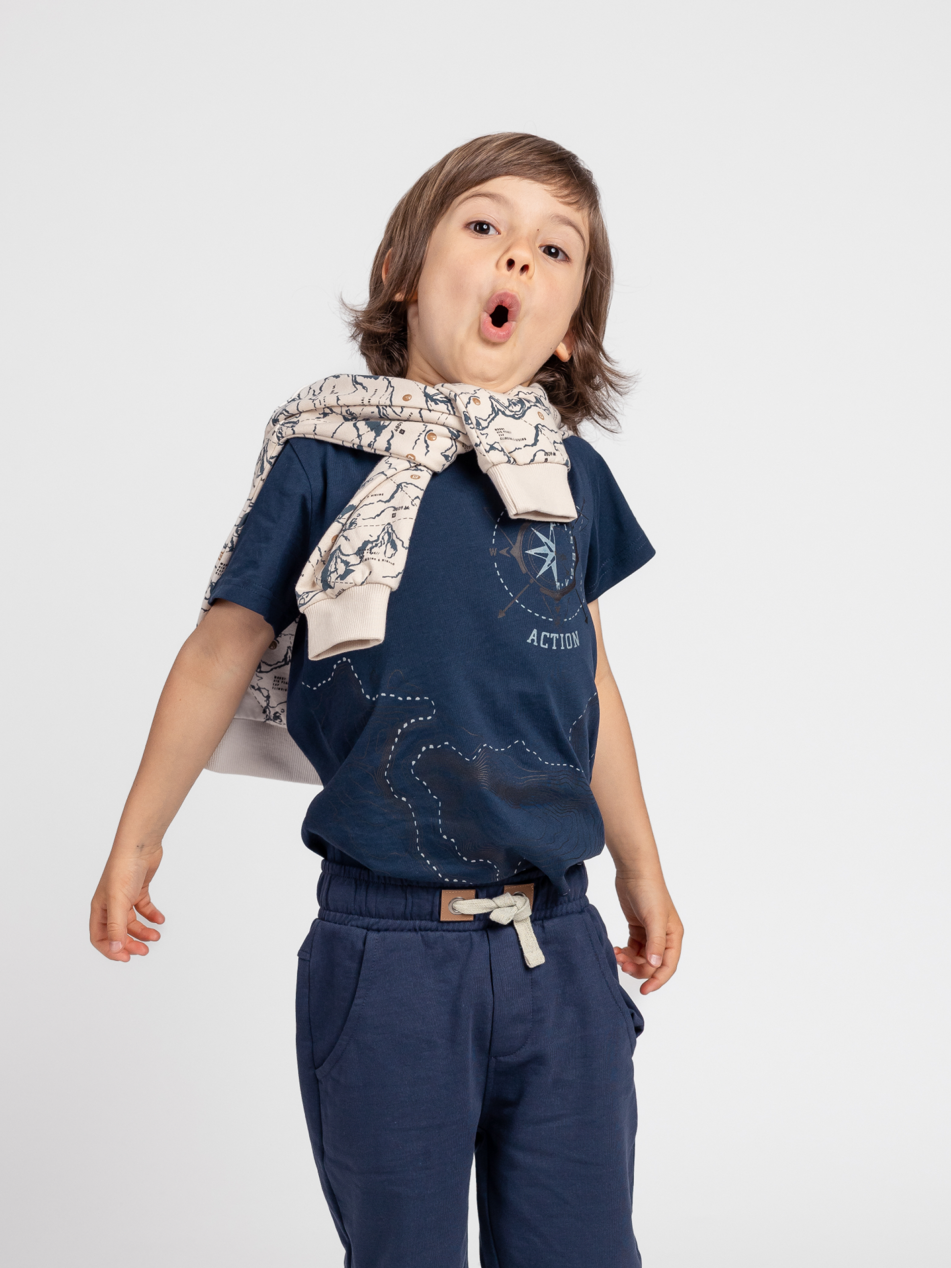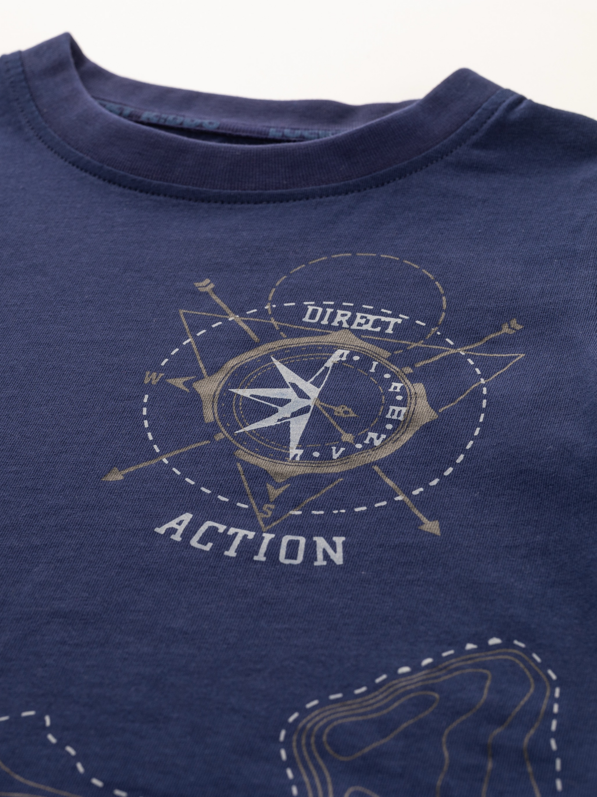 Tmavomodré bavlnené tričko Lucky Kiddo je dokonalou výbavou pre malých dobrodruhov s veľkými plánmi. Na ňom svieti tajomný kompas, ktorý v noci zažiari a ukáže správny smer – aj v najtmavšom lese alebo v izbe so zapálenými snami. Mäkké, pohodlné a vždy pripravené na nové dobrodružstvo!