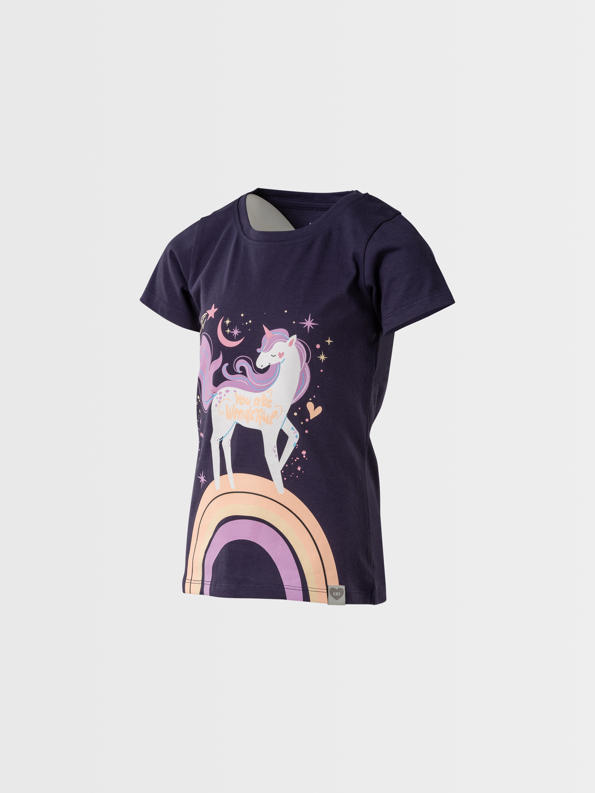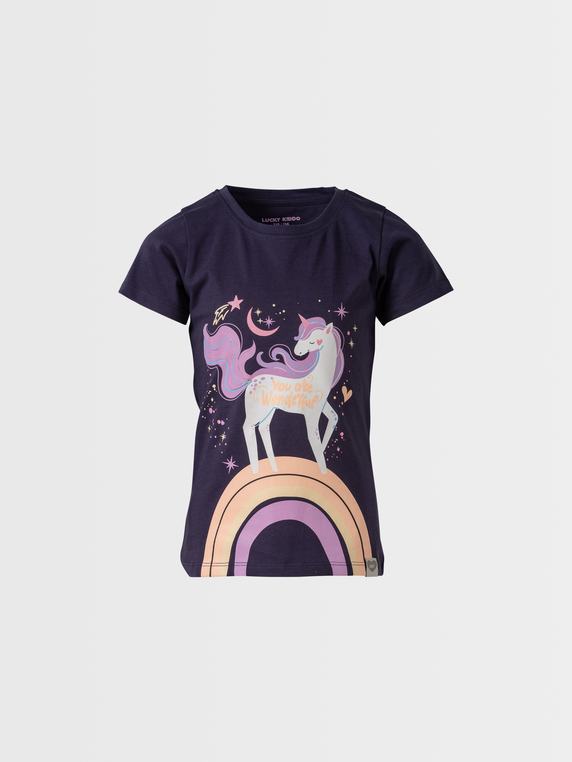 Skočte do sveta fantázie s týmto čarovaným dievčenským tričkom Lucky Kiddo! Nádherná potlač jednorazca na dúhe vnesie do každého dňa iskru kúzla, farieb a úsmevov. Mäkké a pohodlné tričko je ako stvorené pre všetky malé rojky, ktoré veria v rozprávky a odvážne kráčajú v ústrety novým dobrodružstvám!
