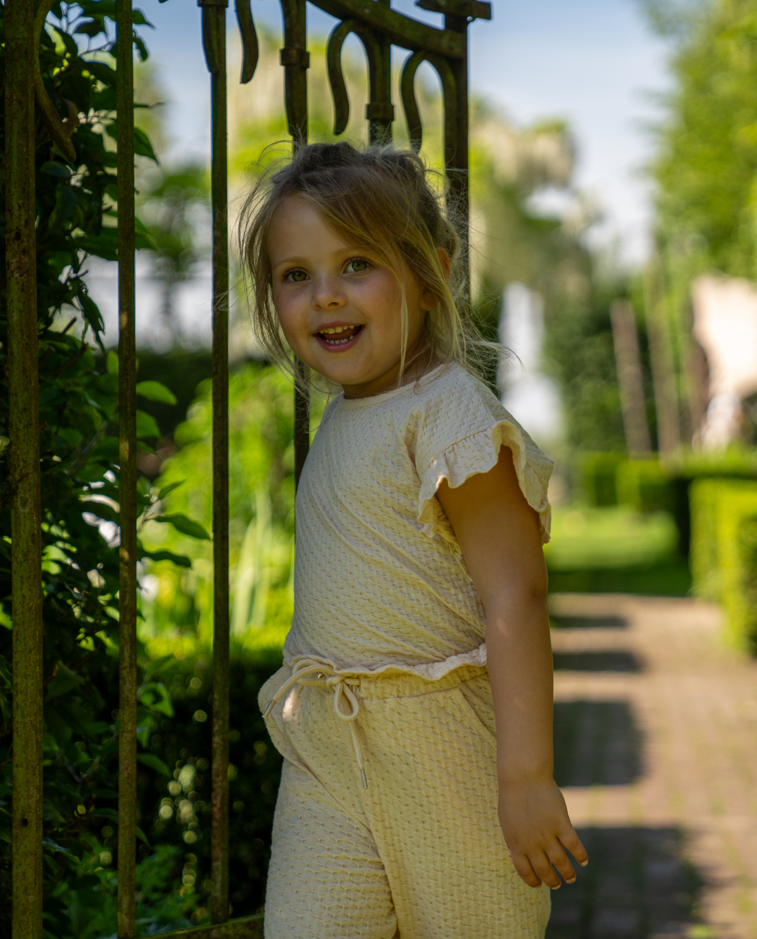Táto rozkošná dvojdielna súprava pre dievčatá Lucky Kiddo je ideálnou voľbou na všetky príležitosti – od hravých dní až po elegantné večerné prechádzky! Vyrobená zo 65 % bavlny a 35 % ľanu, poskytuje ľahký pocit na pokožke, no zároveň je dostatočne odolná na každodenné nosenie. Vrchný diel kimona s krásnymi naberanými rukávmi dodáva nádych elegancie, zatiaľ čo nohavice rovného strihu zaručujú maximálne pohodlie a voľnosť pohybu.