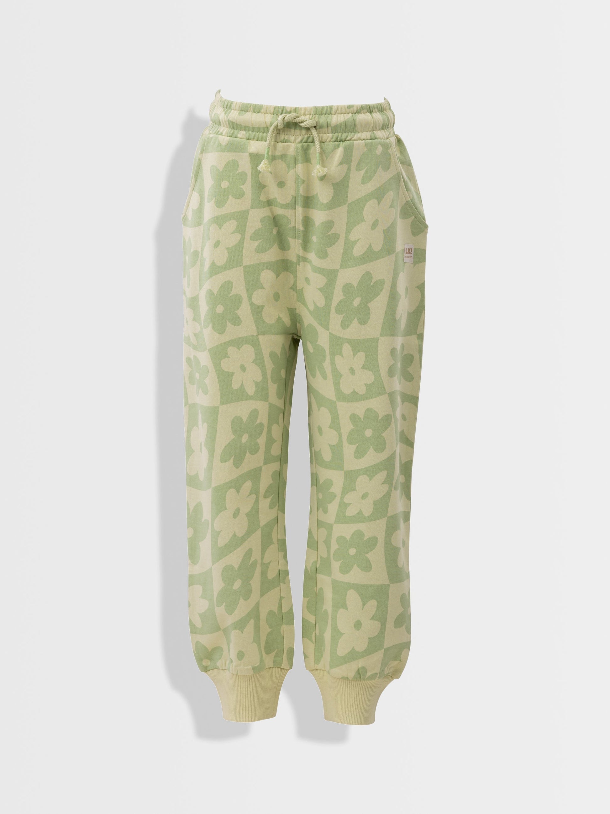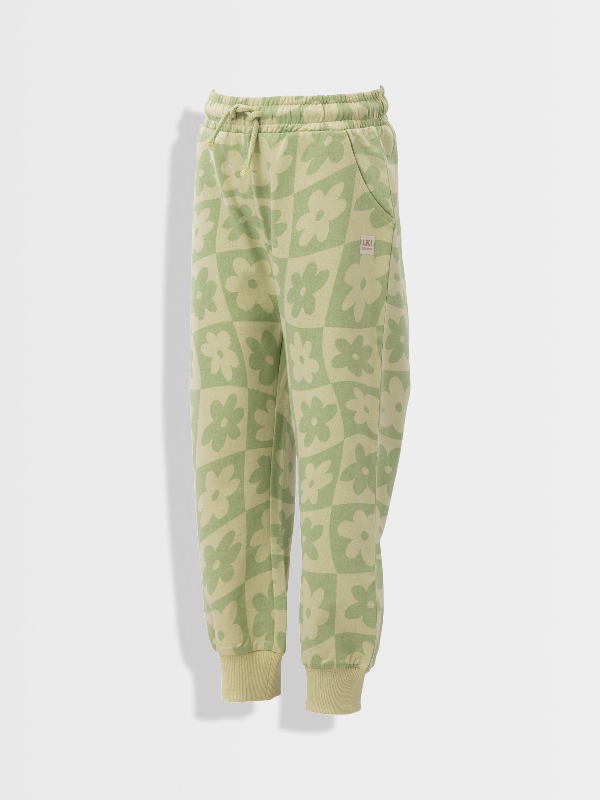 Vrecovité nohavice na behanie s celoplošnou potlačou v štýle kvetinovej sily.