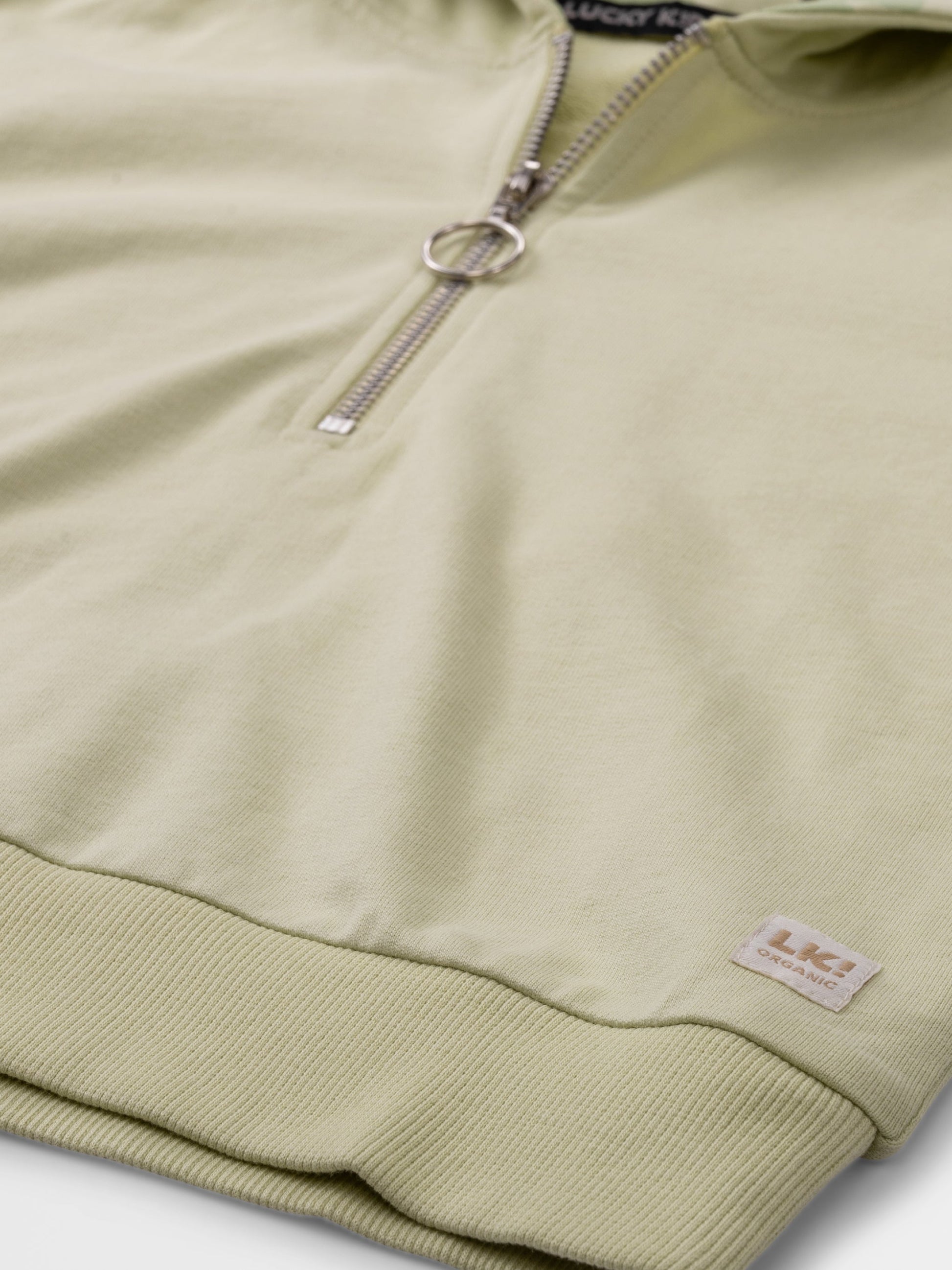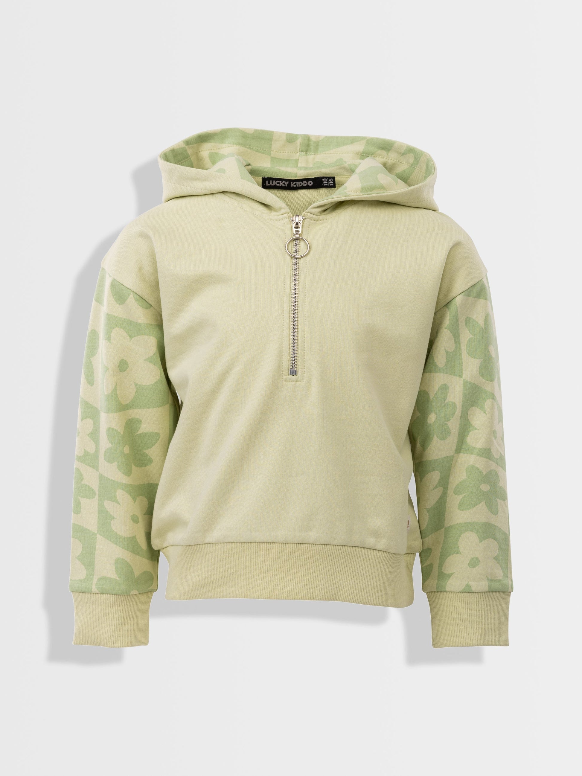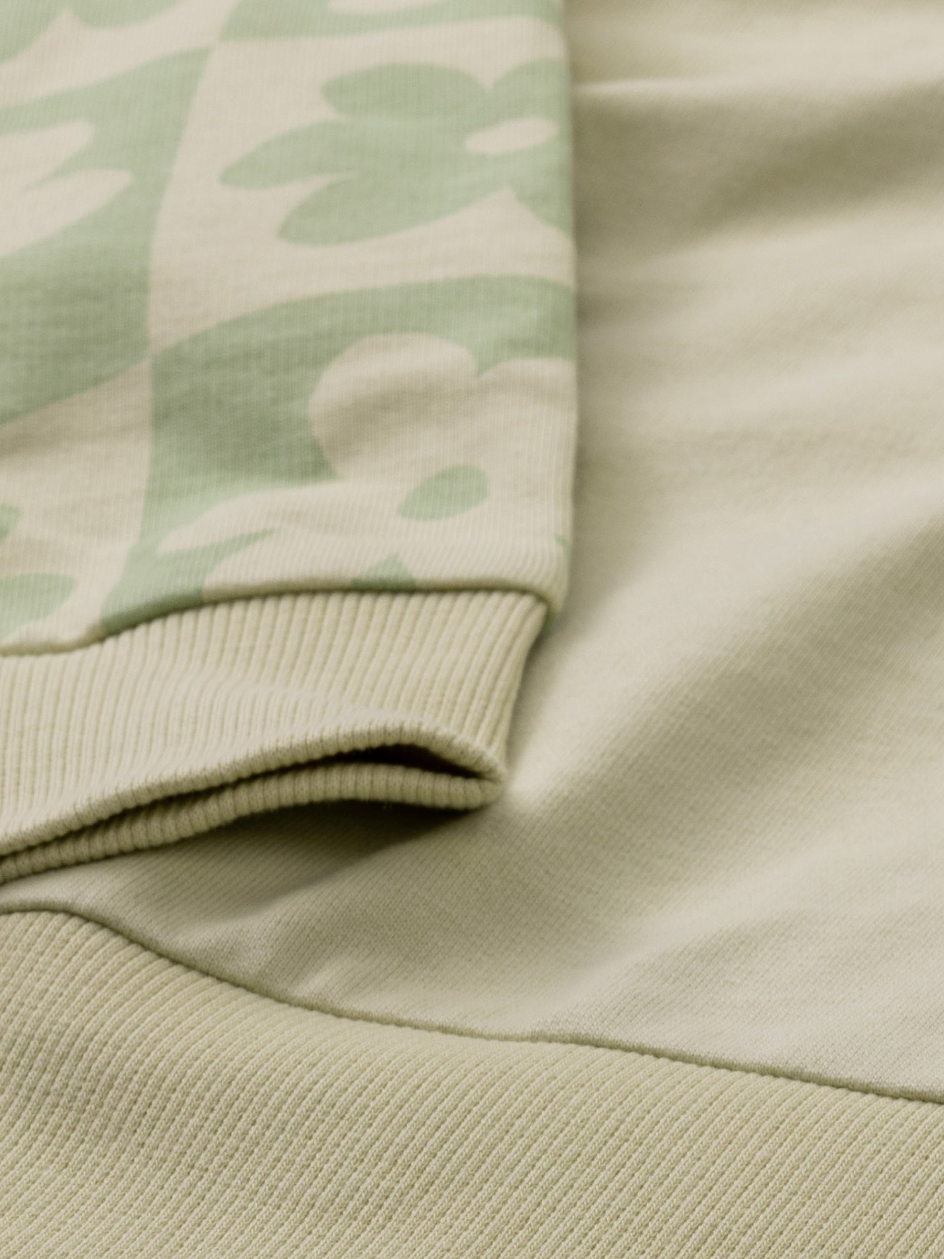 Mikina s kapucňou na polovičný zips s celoplošnou potlačou vo vnútri kapucne a na rukávoch.