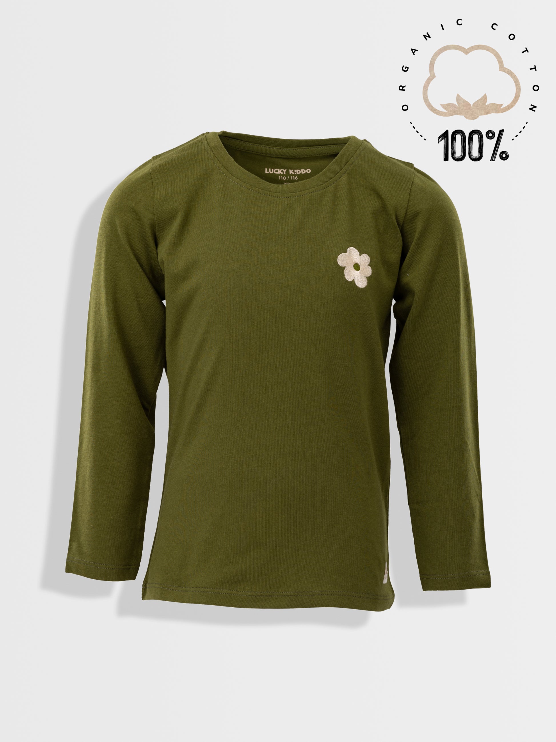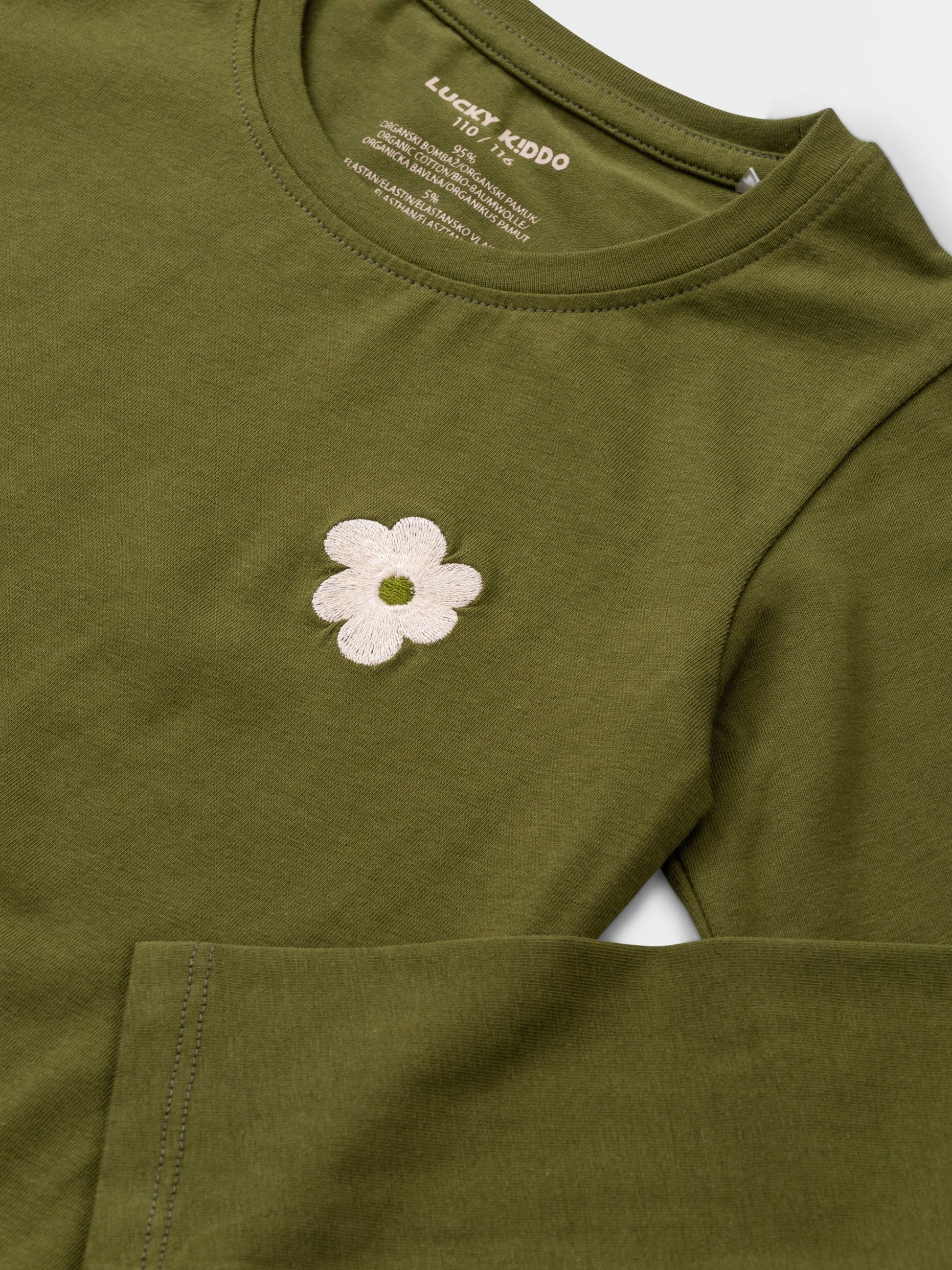 Tričko s dlhým rukávom, kvetinovou výšivkou a trochou streče na lepšie prispôsobenie.