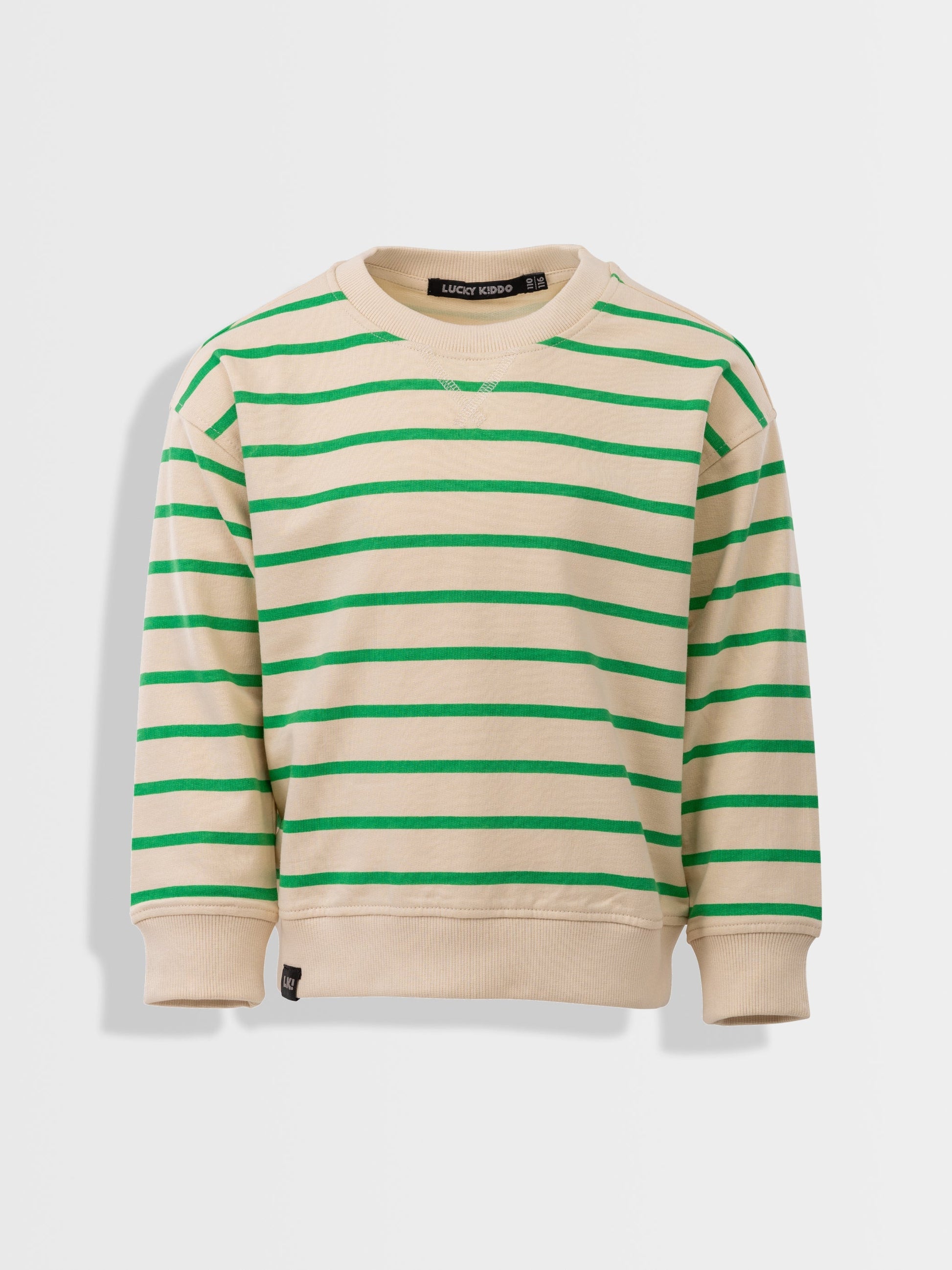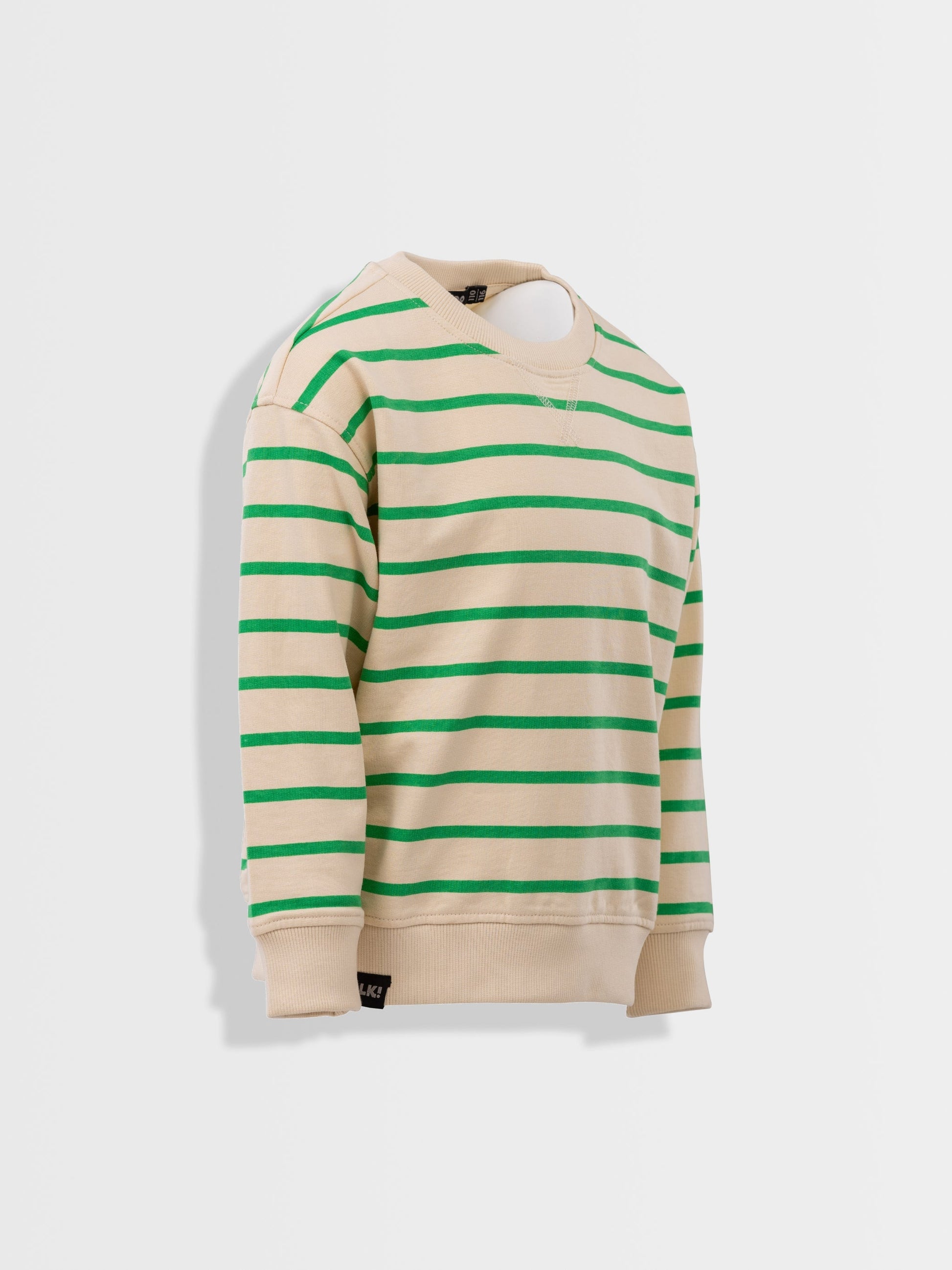 Sveter s krkom a žiarivo zelenými pruhmi.