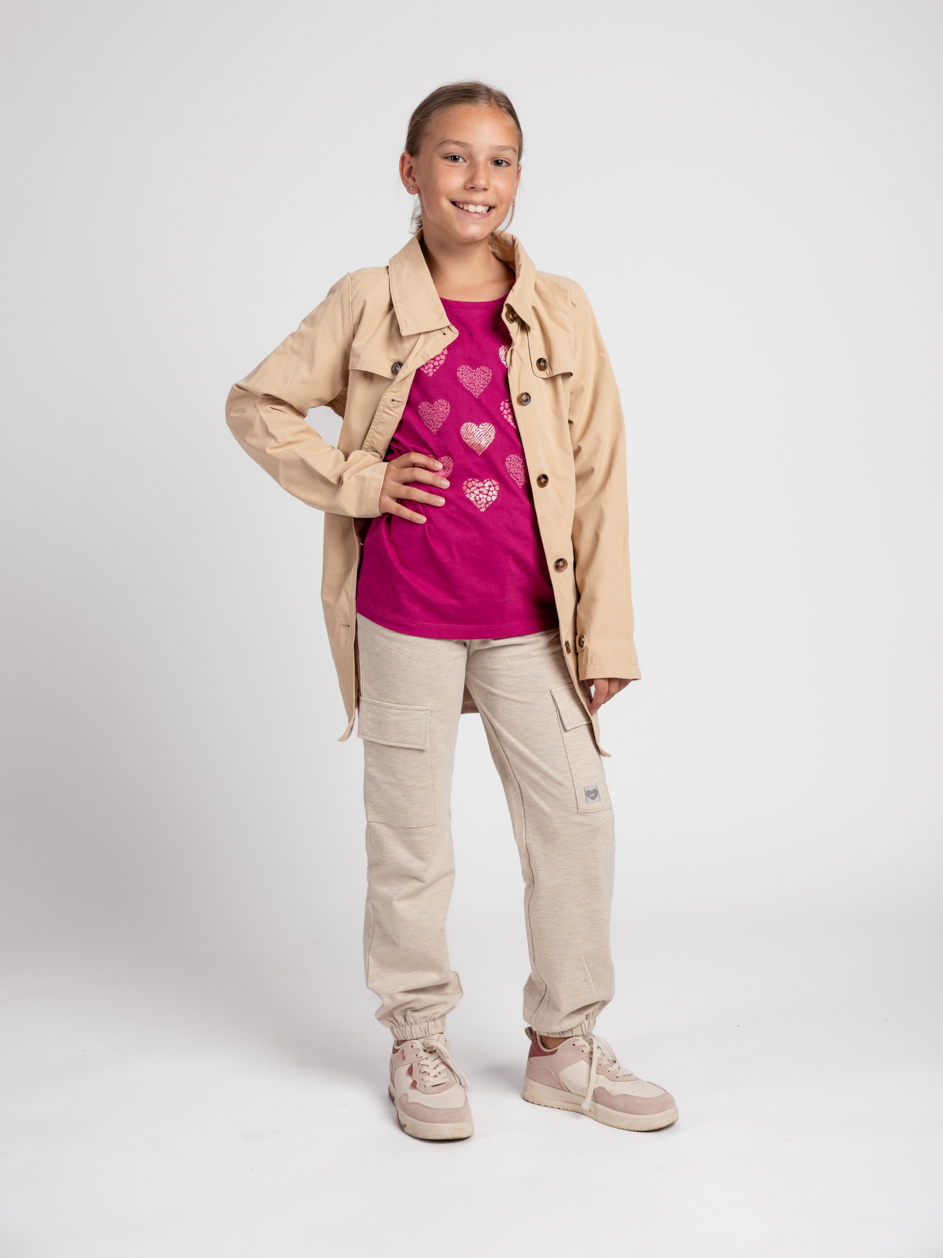 Toto dievčenské tričko s roztomilými srdiečkami, ktoré sa lesknú a rozveselia každú malú princeznú. V módnej farbe vnesie do každého dňa kúsok kúzla a úsmevu – ideálne pre dievčatá, ktoré rady vyčnievajú z davu a bavia sa!