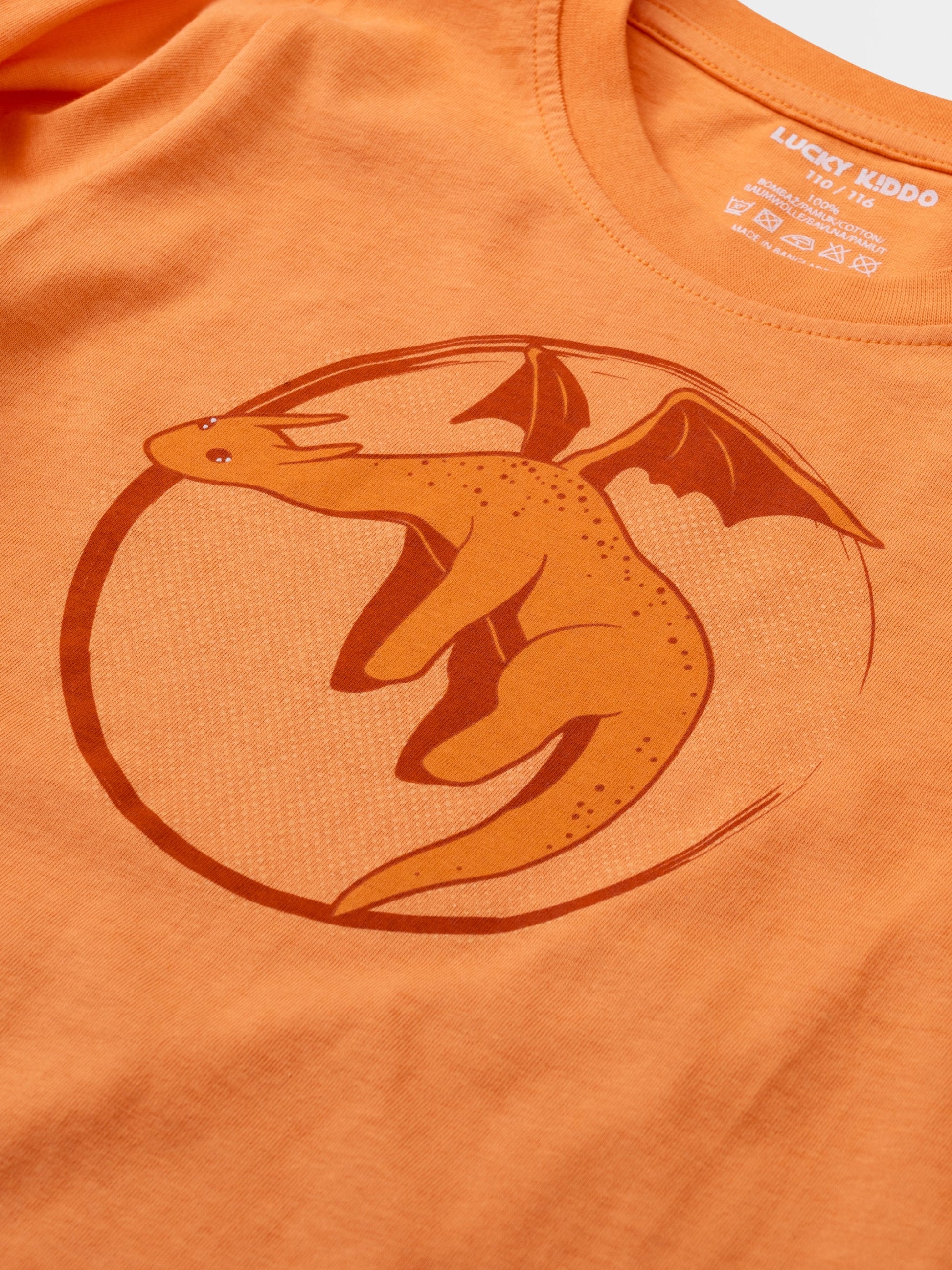 Tričko s dlhým rukávom v žiarivej farbe a potlačou lietajúcich dinosaurov.