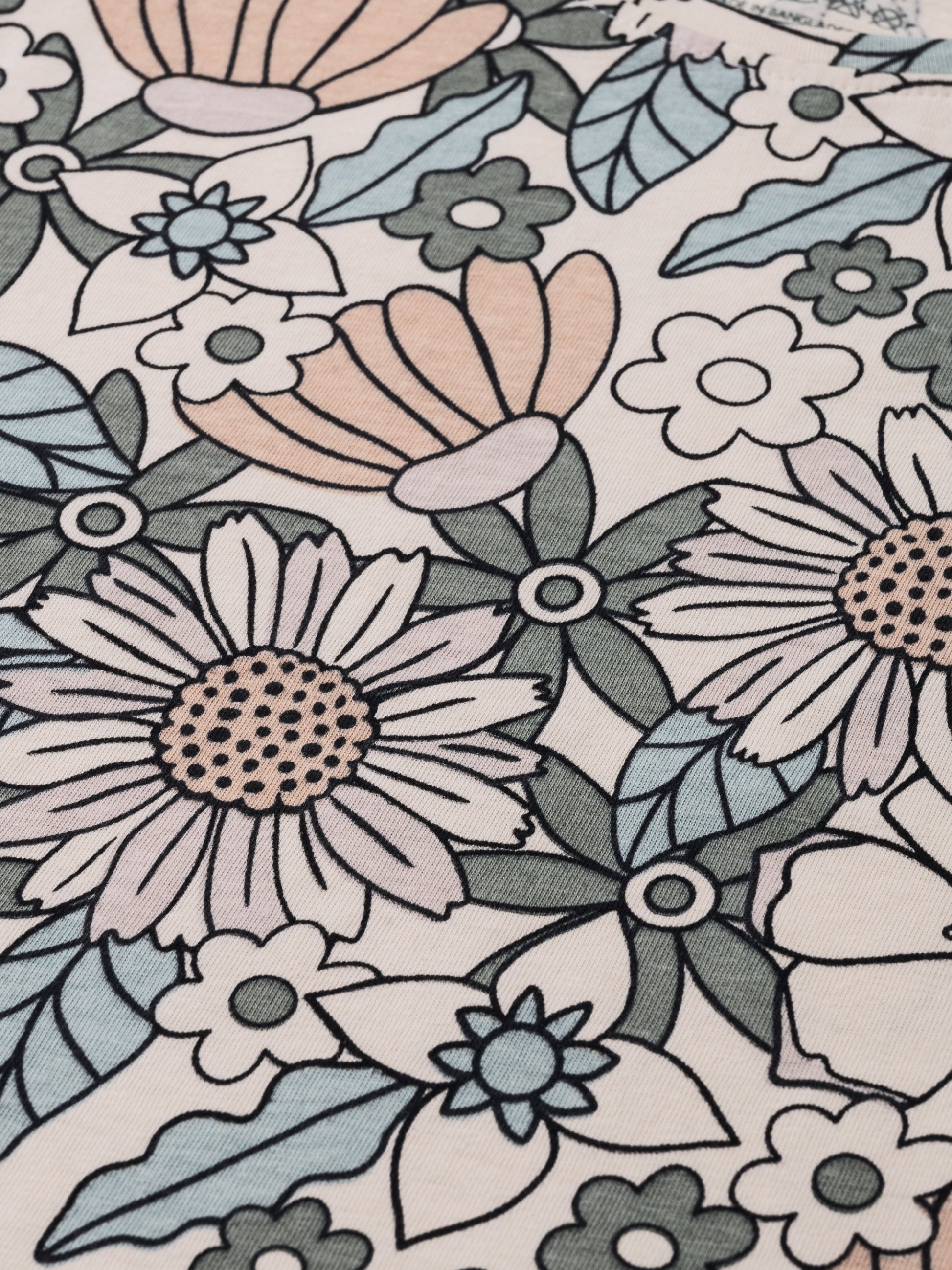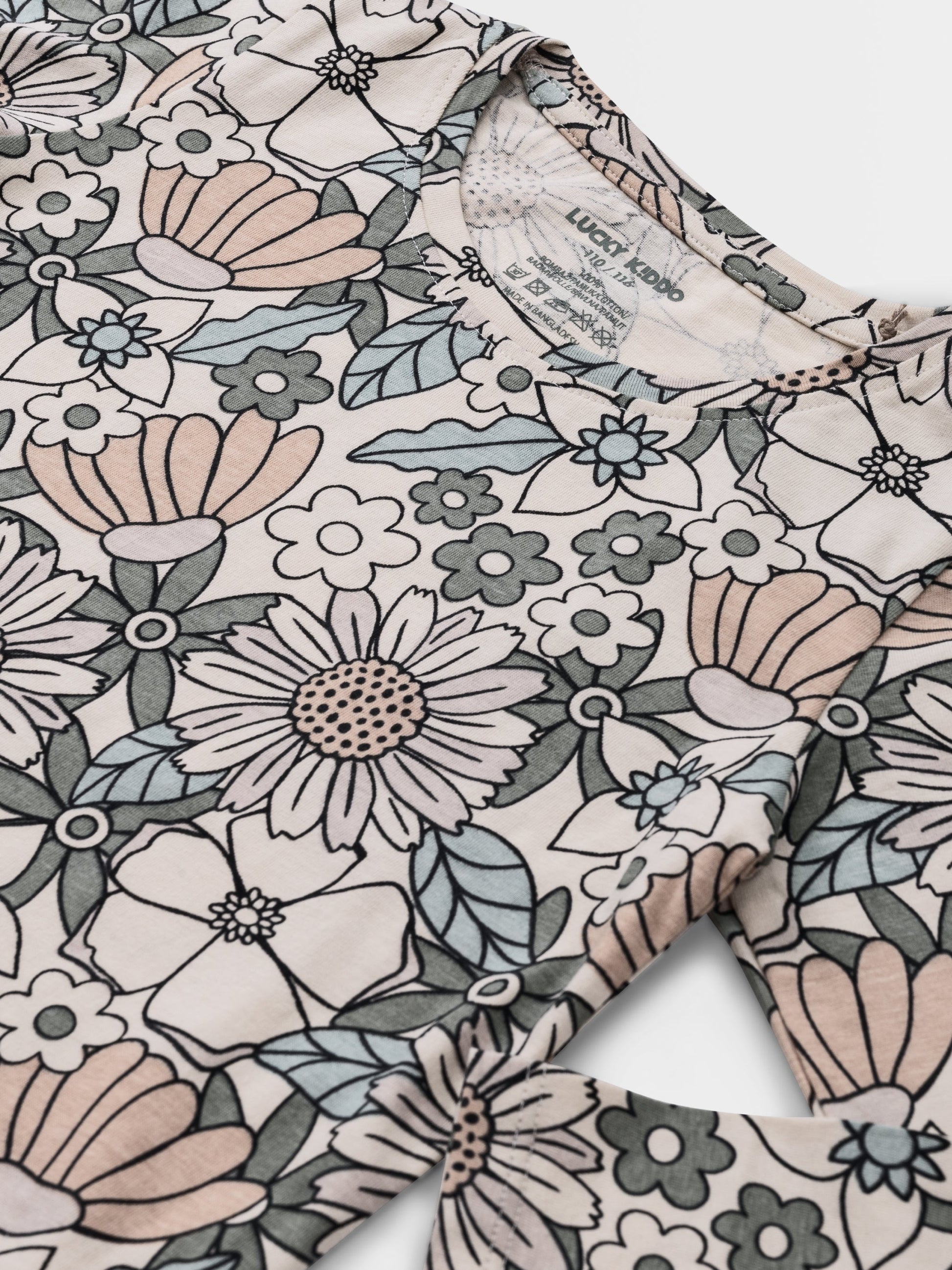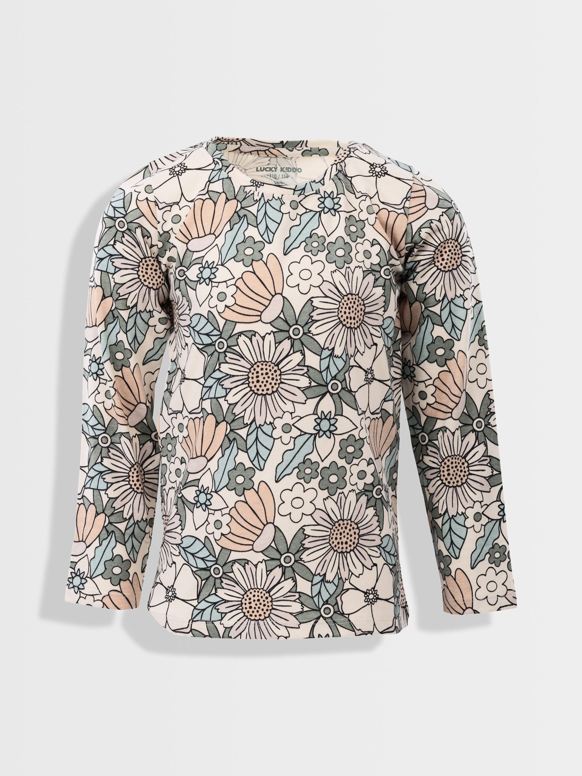 Tričko s dlhým rukávom a celoplošnou kvetinovou potlačou.