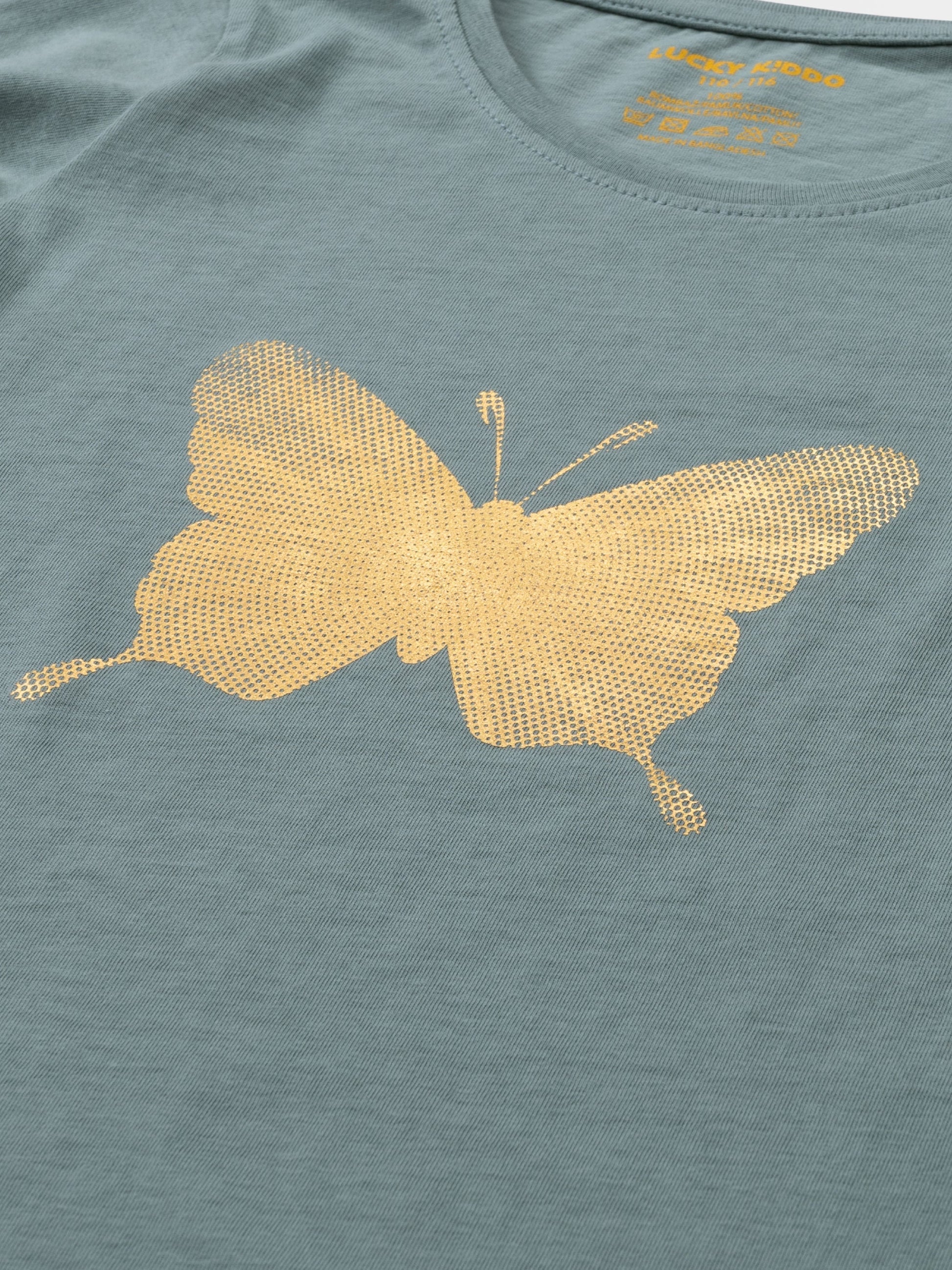 Tričko s dlhým rukávom a zlatou potlačou motýľov.
