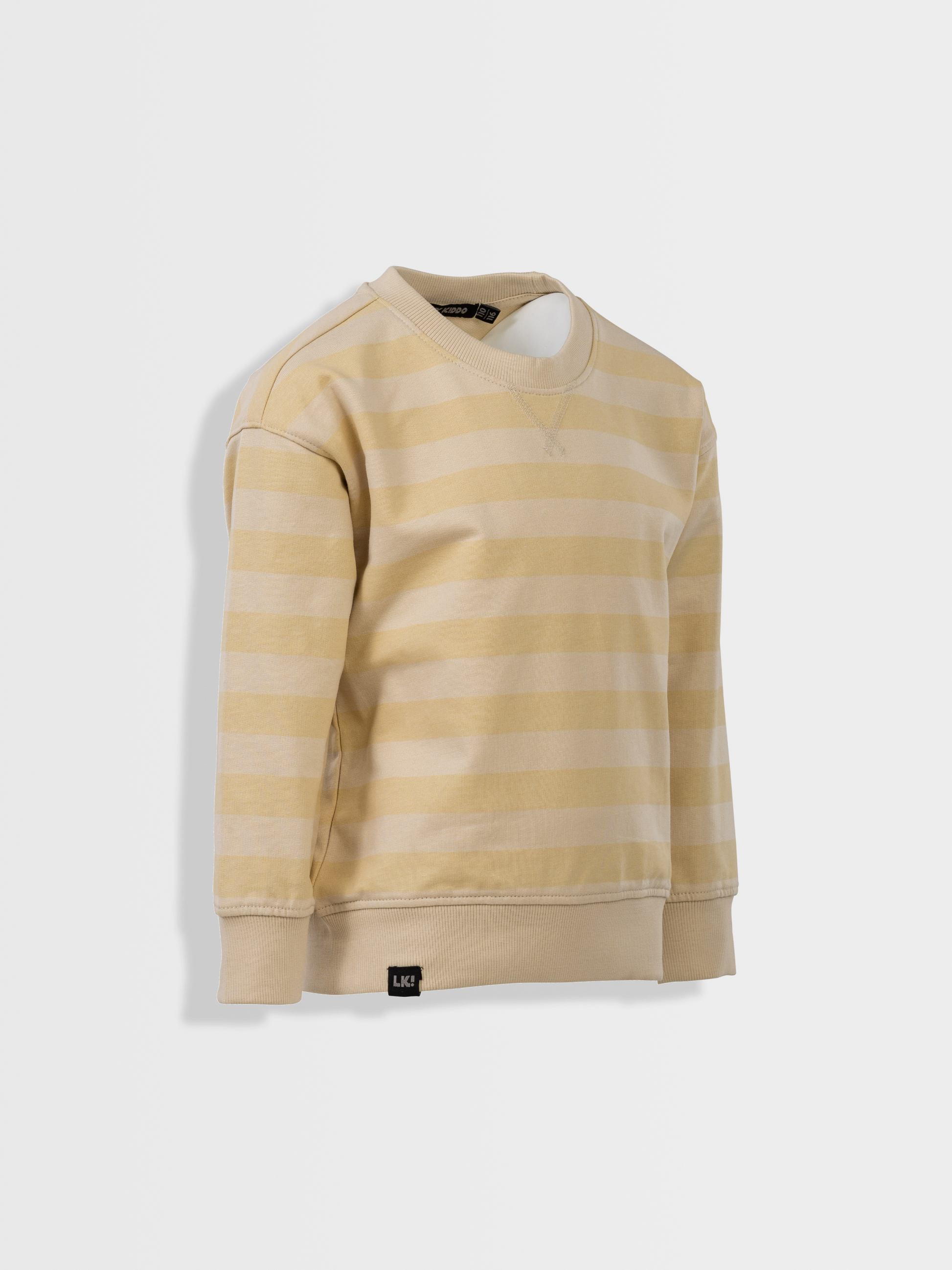 Chlapčenský pulóver v prírodnej farbe s prúžkami.