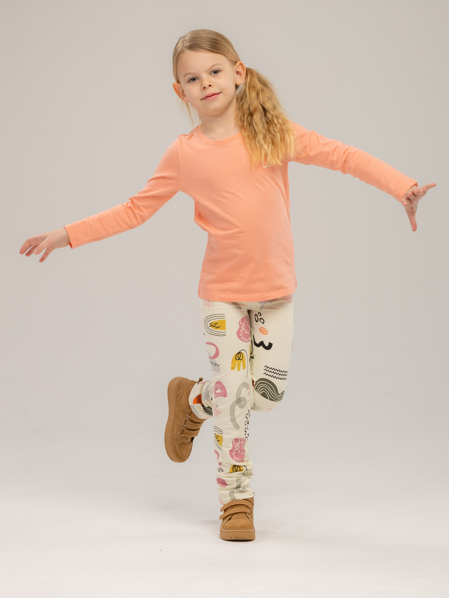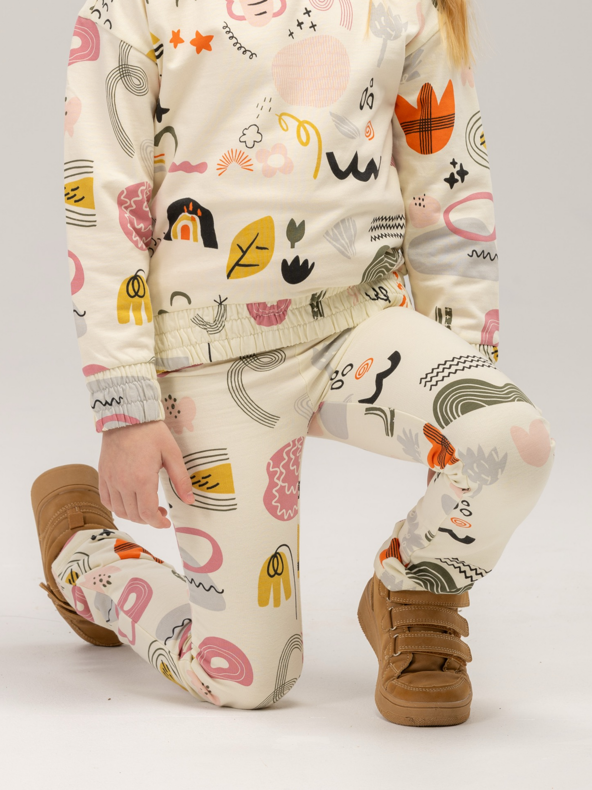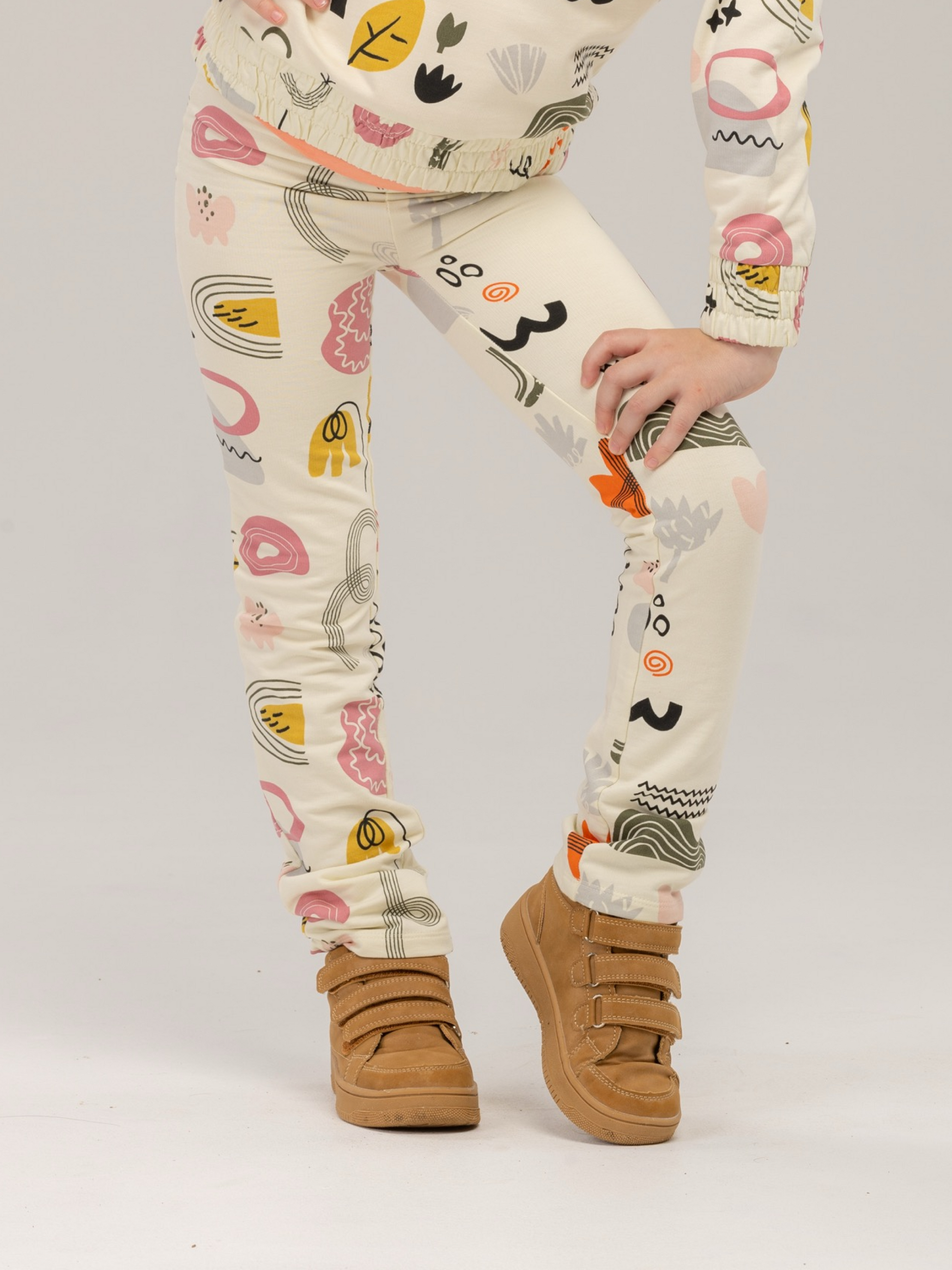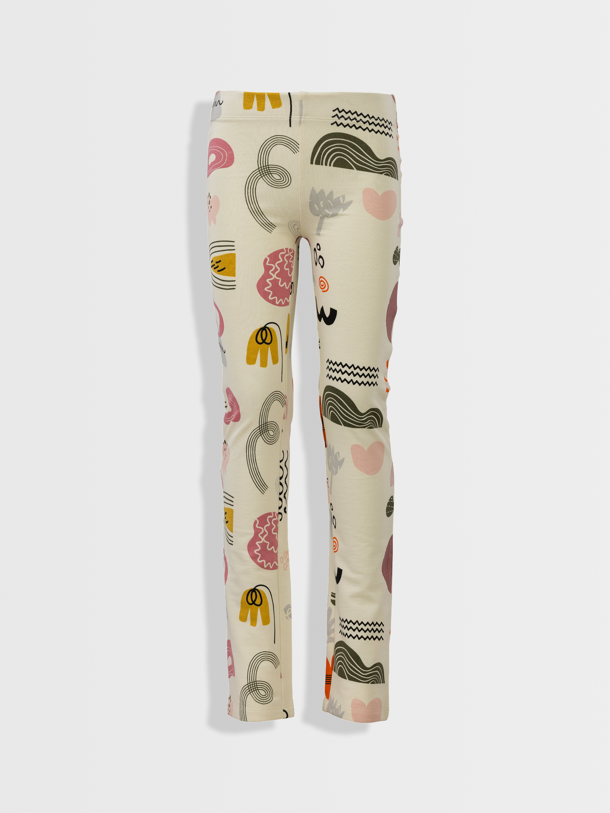 Dievčenské legíny s rovným strihom vo vanilkovej farbe s roztomilou potlačou.