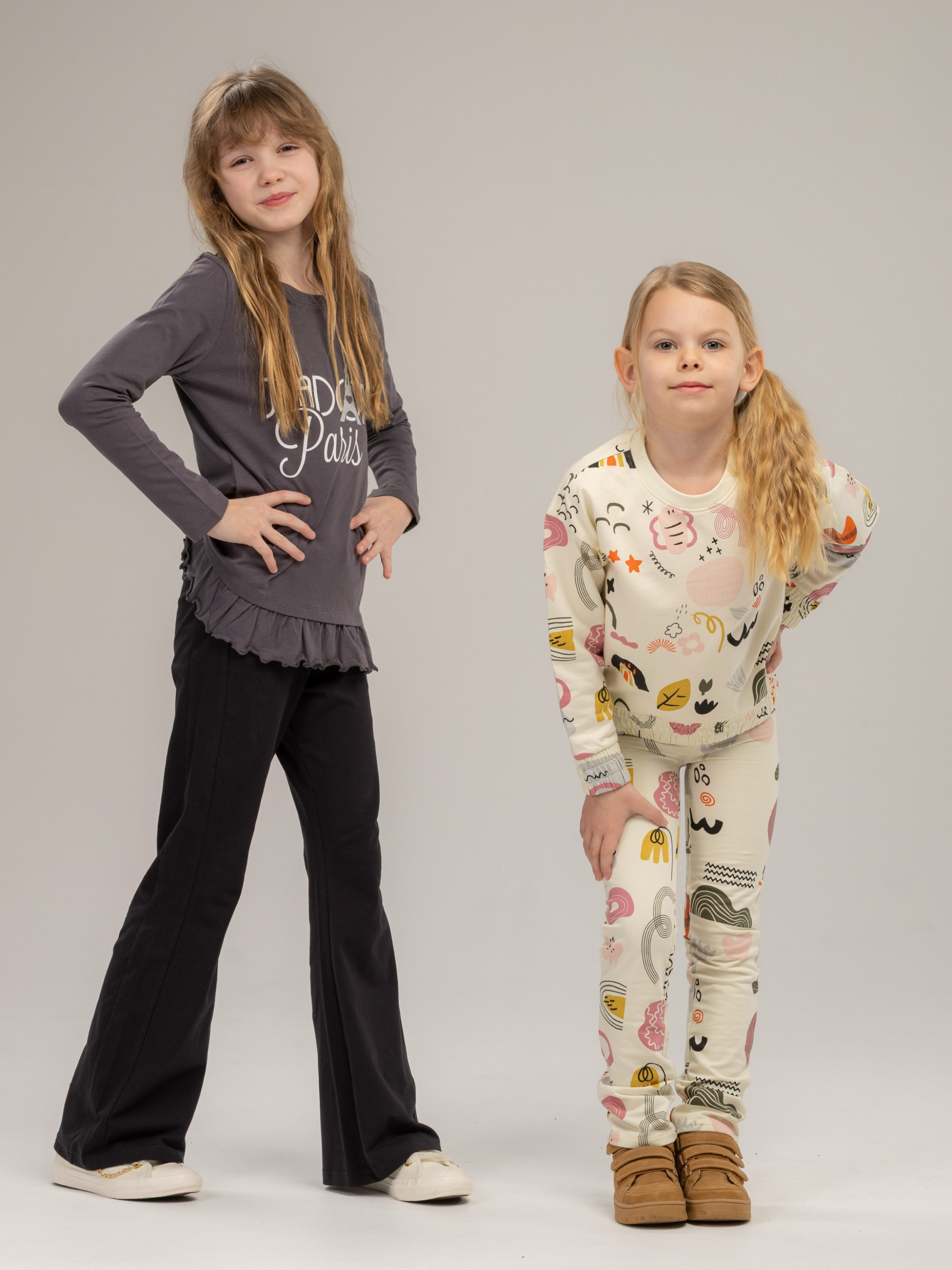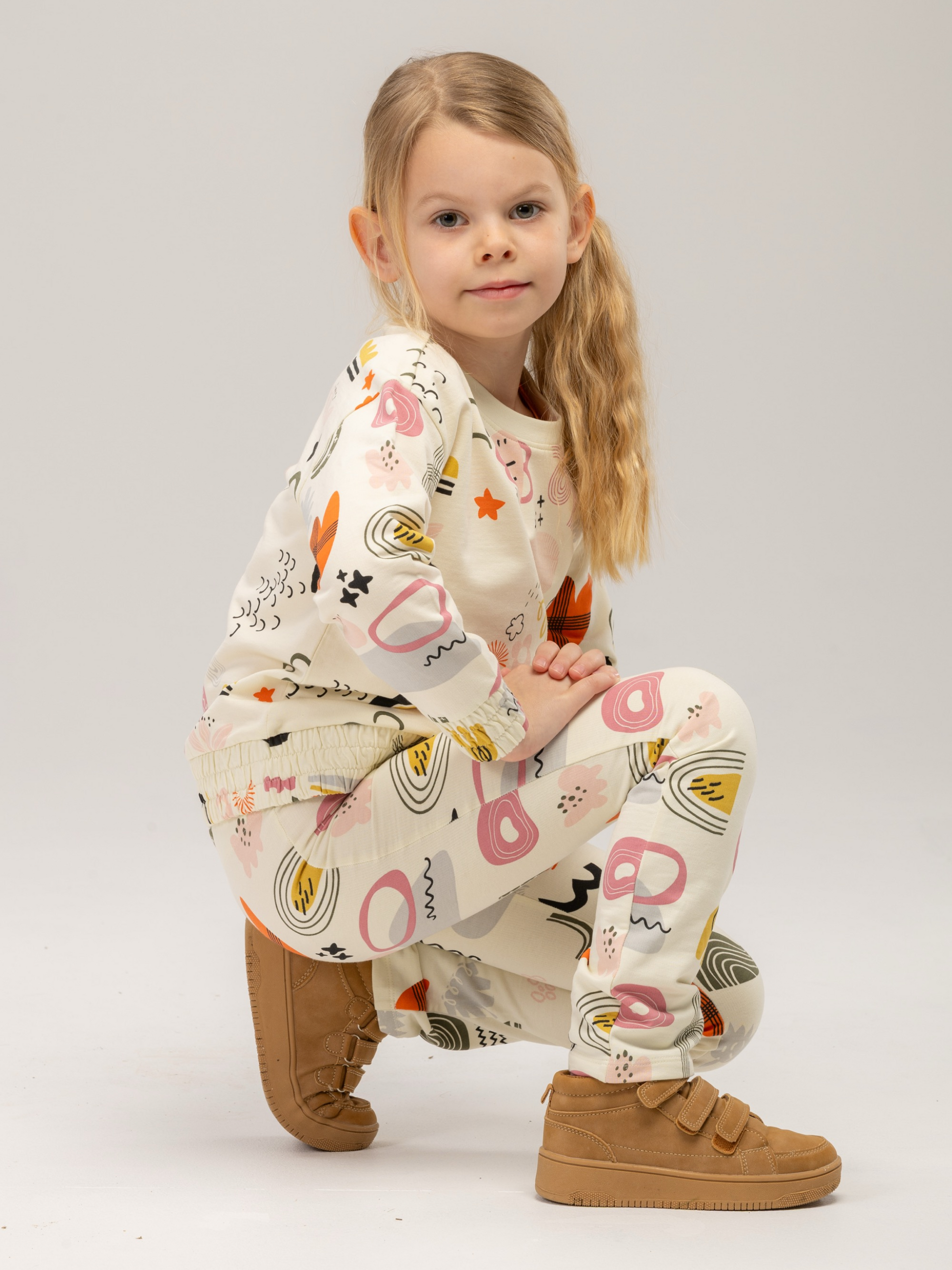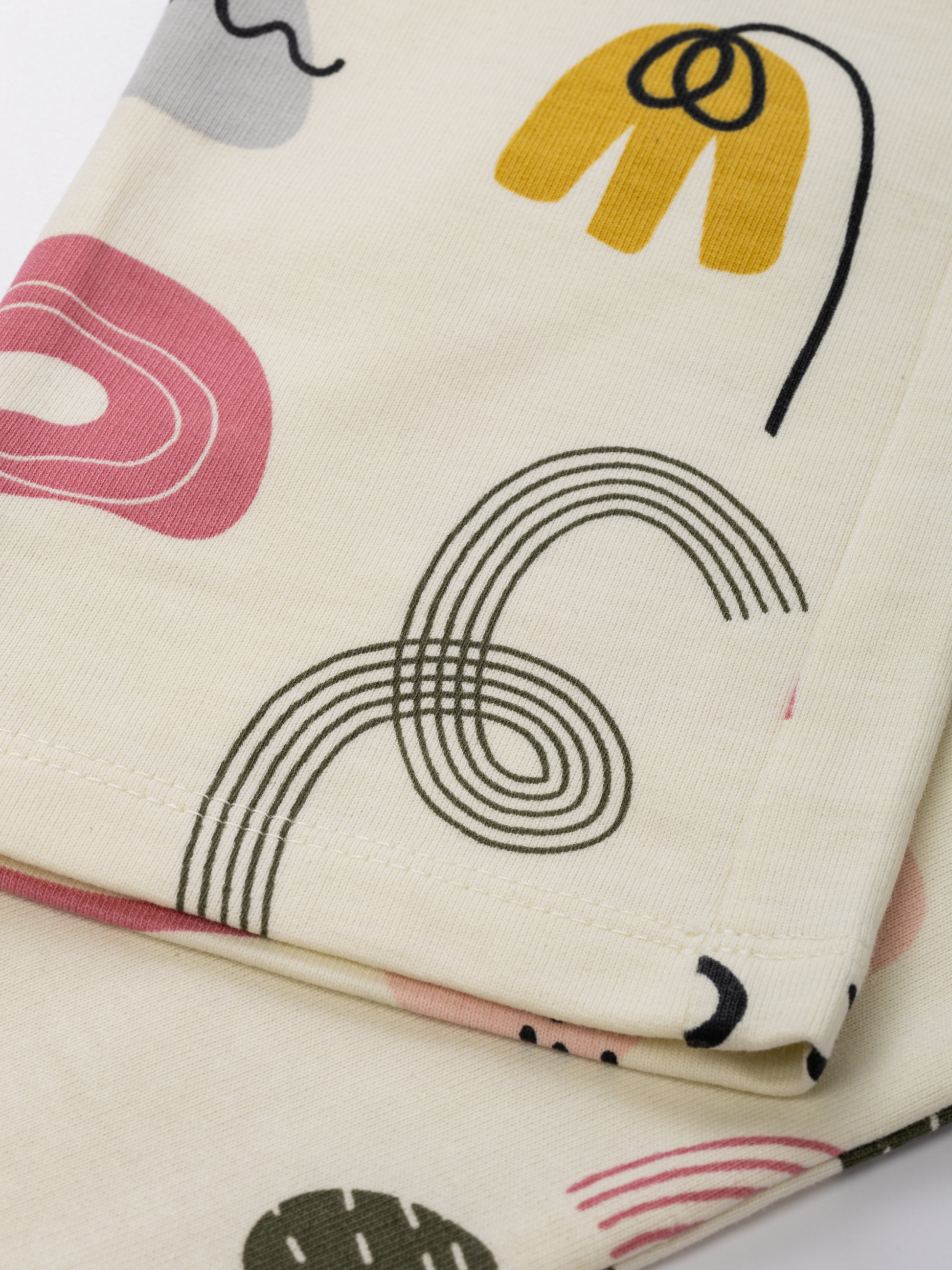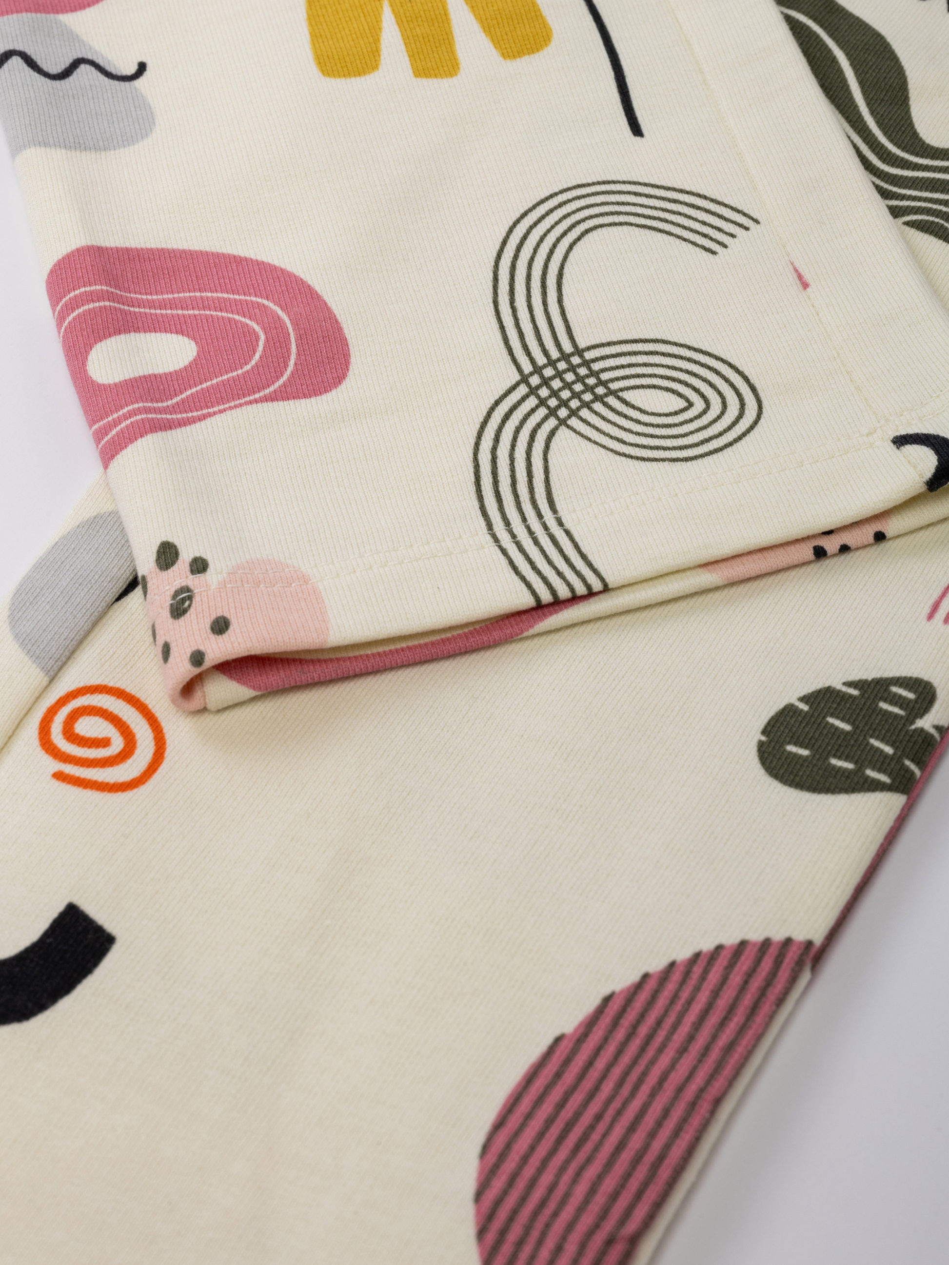 Dievčenské legíny s rovným strihom vo vanilkovej farbe s roztomilou potlačou.