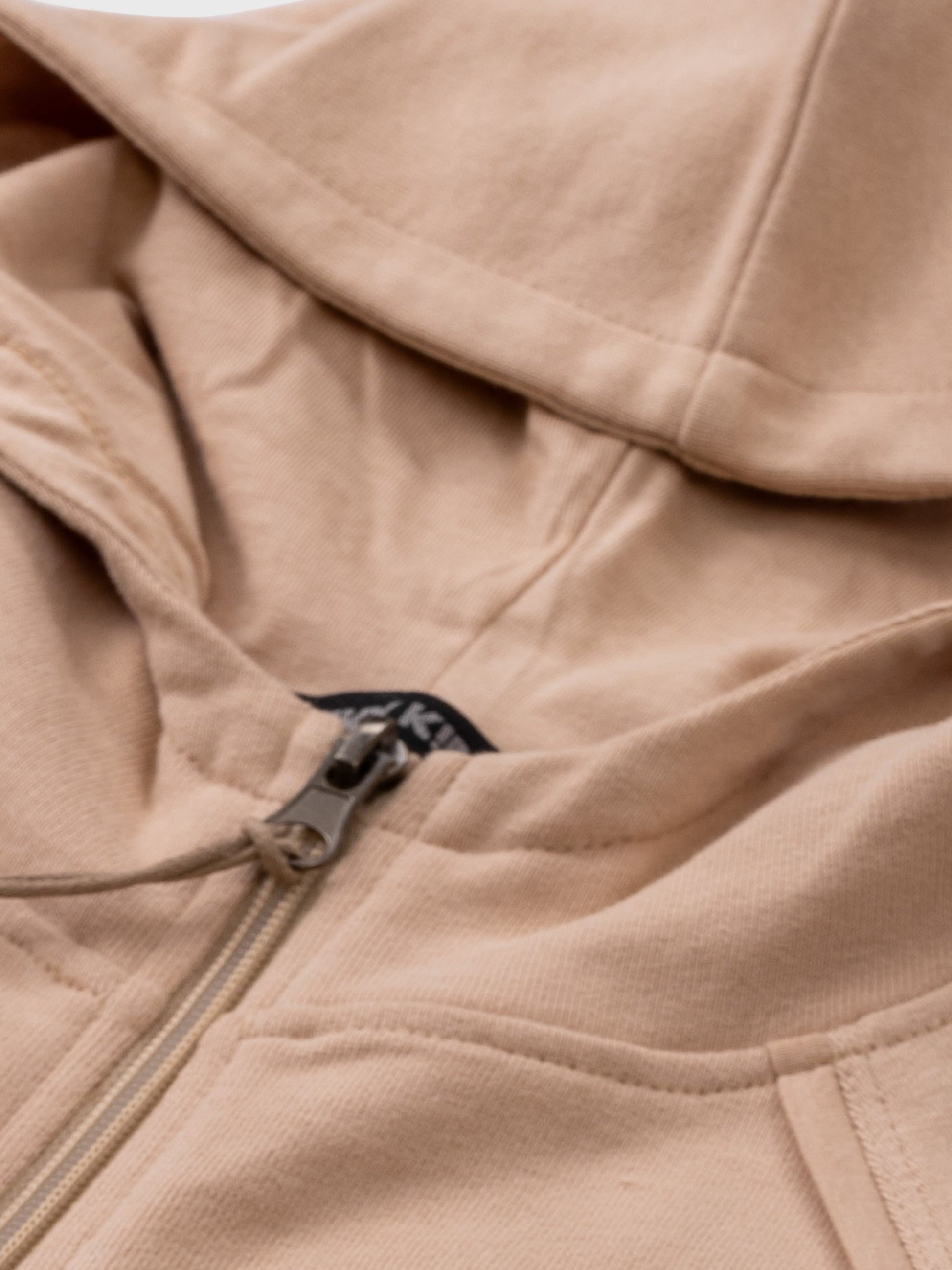 Mikina na zips do polovice s celoplošnou potlačou vo vnútri kapucne a na rukávoch.