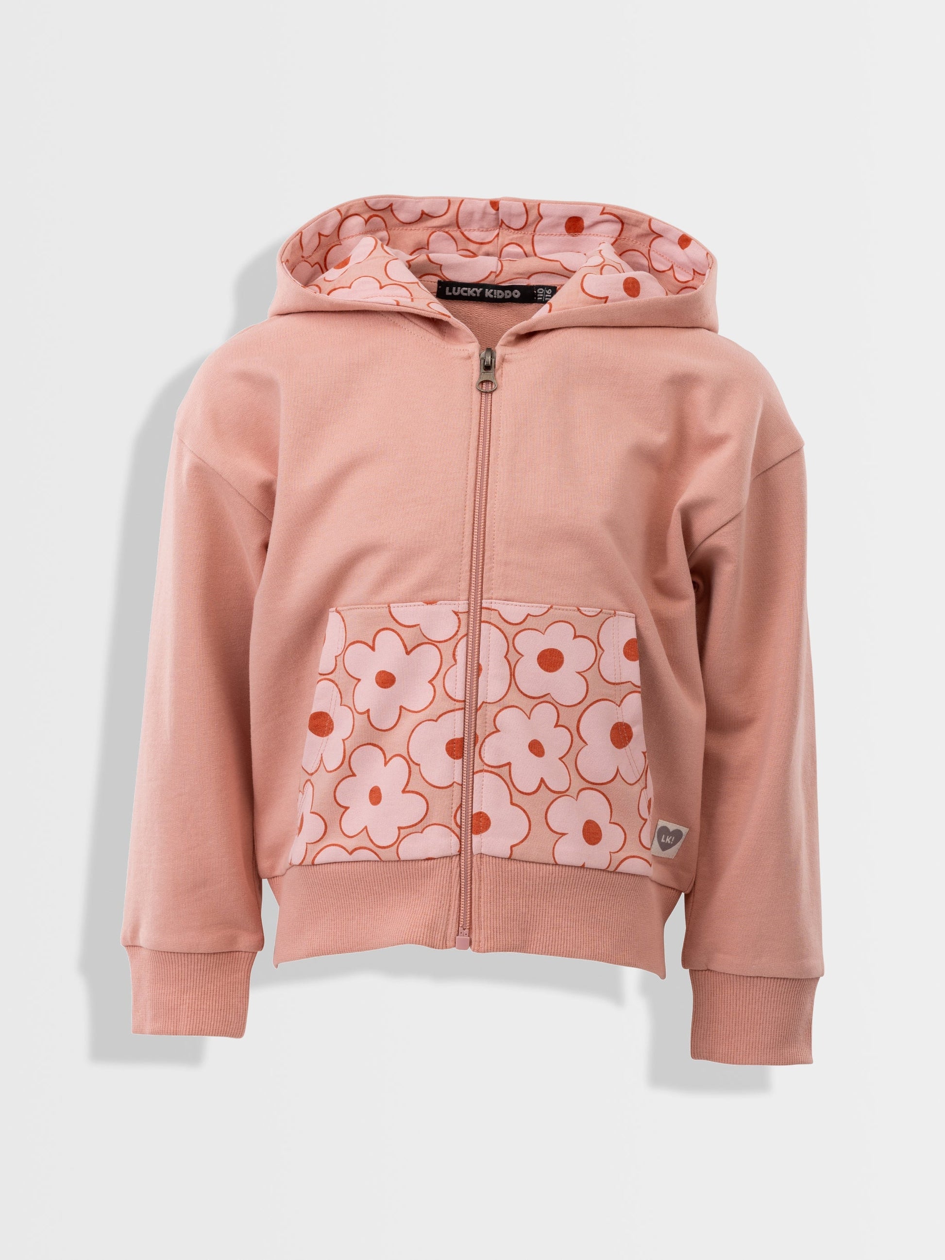 Mikina na zips s celoplošnou potlačou vo vnútri kapucne a na vreckách.